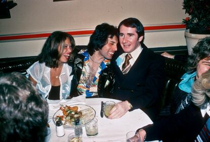 Freddie Mercury Rock singer Freddie Mercury (R) drinking a class of champagne as his girlfriend Mary Austin looks on during party for friends at home. (Photo by Terrence Spencer//Time Life Pictures/Getty Images) (Terrence Spencer)