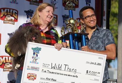 World’s ugliest dog 2024 PETALUMA, CALIFORNIA - JUNE 21: Ann Lewis holds her dog Wild Thang after winning the World's Ugliest Dog contest at the Marin-Sonoma County Fair on June 21, 2024 in Petaluma, California. A Pekingese dog named Wild Thang won the 34th annual World's Ugliest Dog contest and was awarded $5,000. (Photo by Justin Sullivan/Getty Images) (Justin Sullivan/Getty Images)