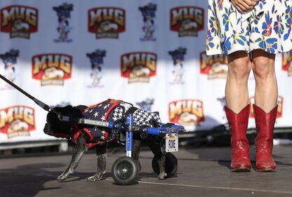 World’s ugliest dog 2024 PETALUMA, CALIFORNIA - JUNE 21: A dog named Daisy Mae looks on during the World's Ugliest Dog contest at the Marin-Sonoma County Fair on June 21, 2024 in Petaluma, California. A Pekingese dog named Wild Thang won the 34th annual World's Ugliest Dog contest and was awarded $5,000. (Photo by Justin Sullivan/Getty Images) (Justin Sullivan/Getty Images)
