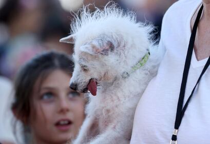 World’s ugliest dog 2024 PETALUMA, CALIFORNIA - JUNE 21: A Chinese Crested dog named Poppy prepares to walk down the red carpet during on the World's Ugliest Dog contest at the Marin-Sonoma County Fair on June 21, 2024 in Petaluma, California. A Pekingese dog named Wild Thang won the 34th annual World's Ugliest Dog contest and was awarded $5,000. (Photo by Justin Sullivan/Getty Images) (Justin Sullivan/Getty Images)