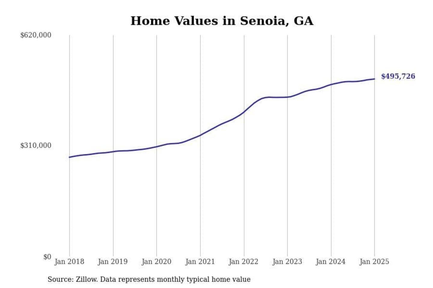 Stacker compiled a list of cities with the most expensive homes in the Atlanta-Sandy Springs-Alpharetta, GA metro area using data from Zillow. Charts show the monthly typical home value since January 2018.