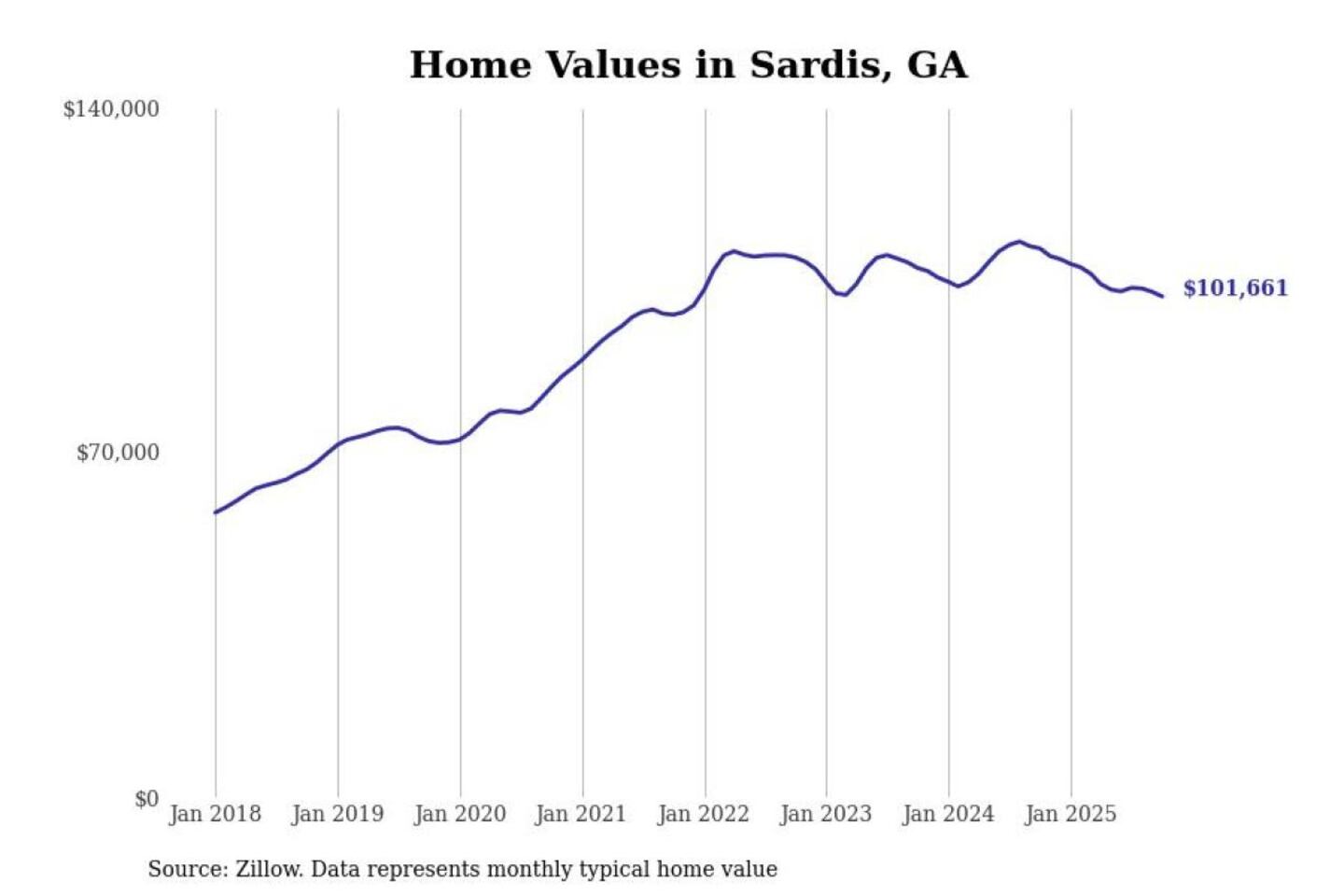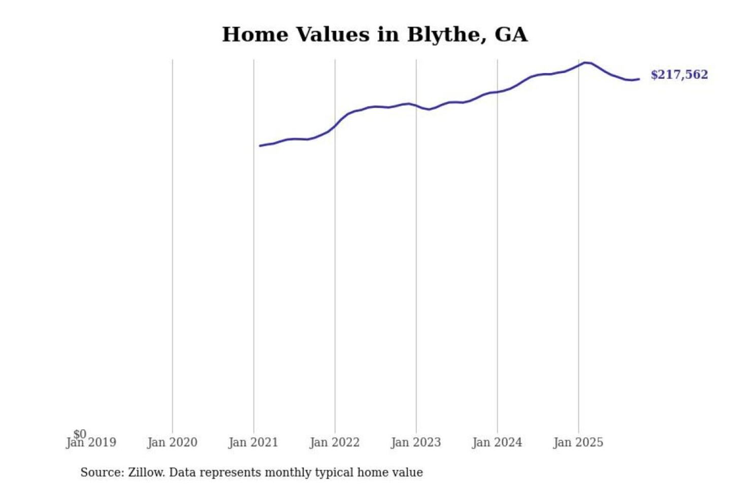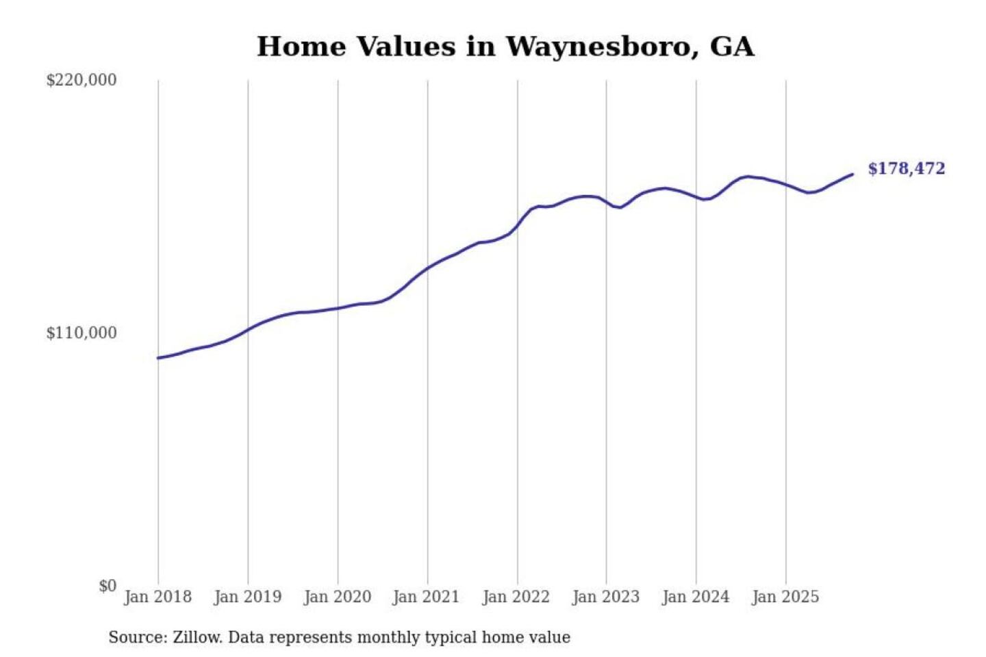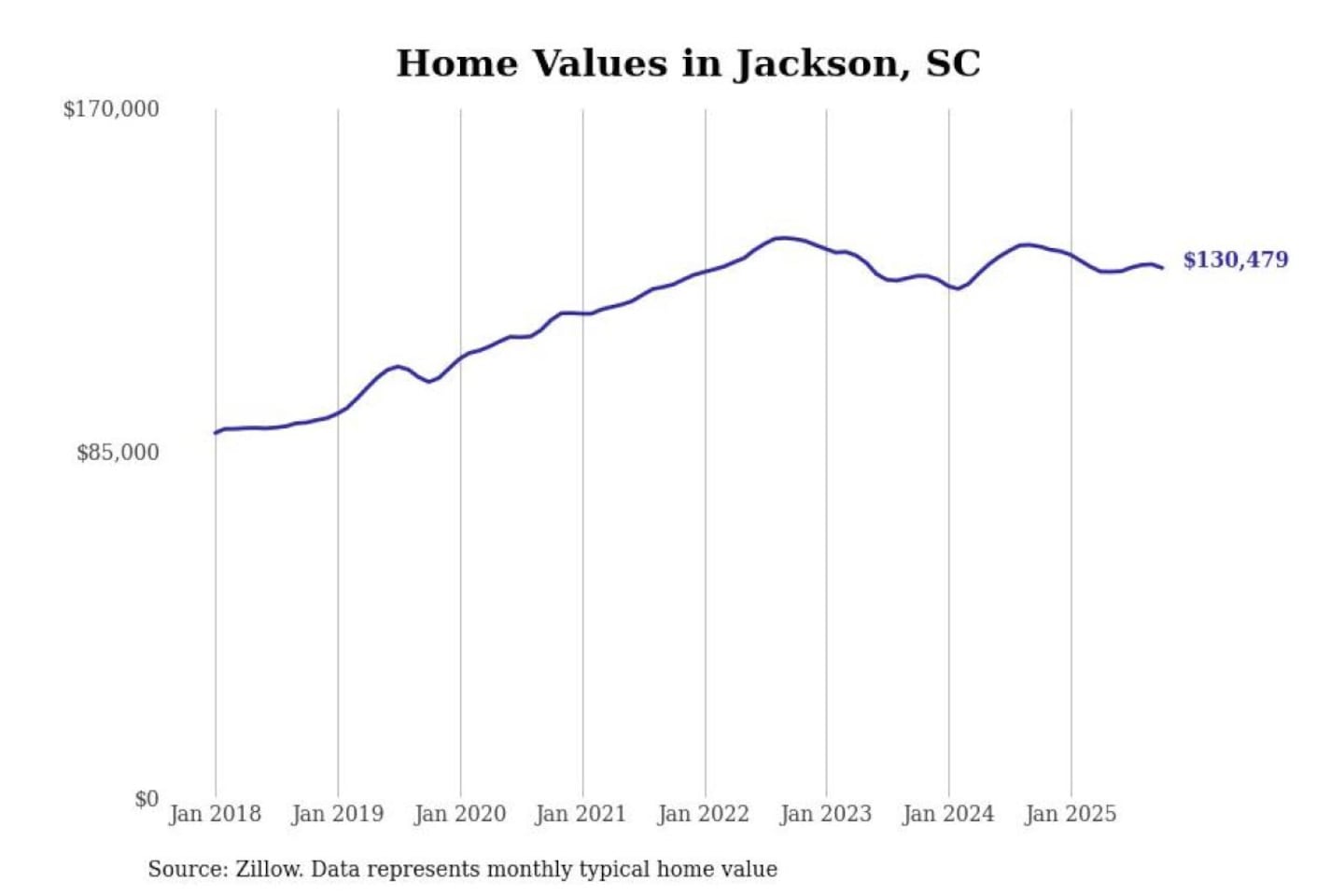Stacker compiled a list of cities with the most expensive homes in the Augusta-Richmond County, GA-SC metro area using data from Zillow. Charts show the monthly typical home value since January 2018.