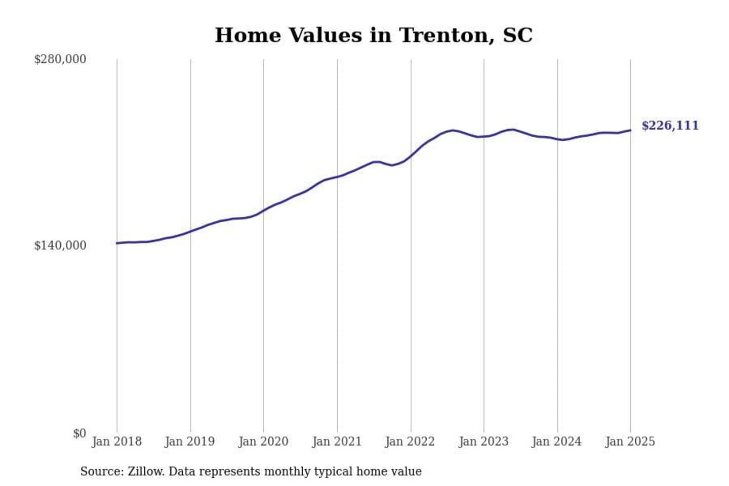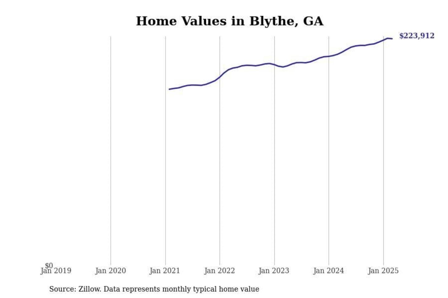 Stacker compiled a list of cities with the most expensive homes in the Augusta-Richmond County, GA-SC metro area using data from Zillow. Charts show the monthly typical home value since January 2018.