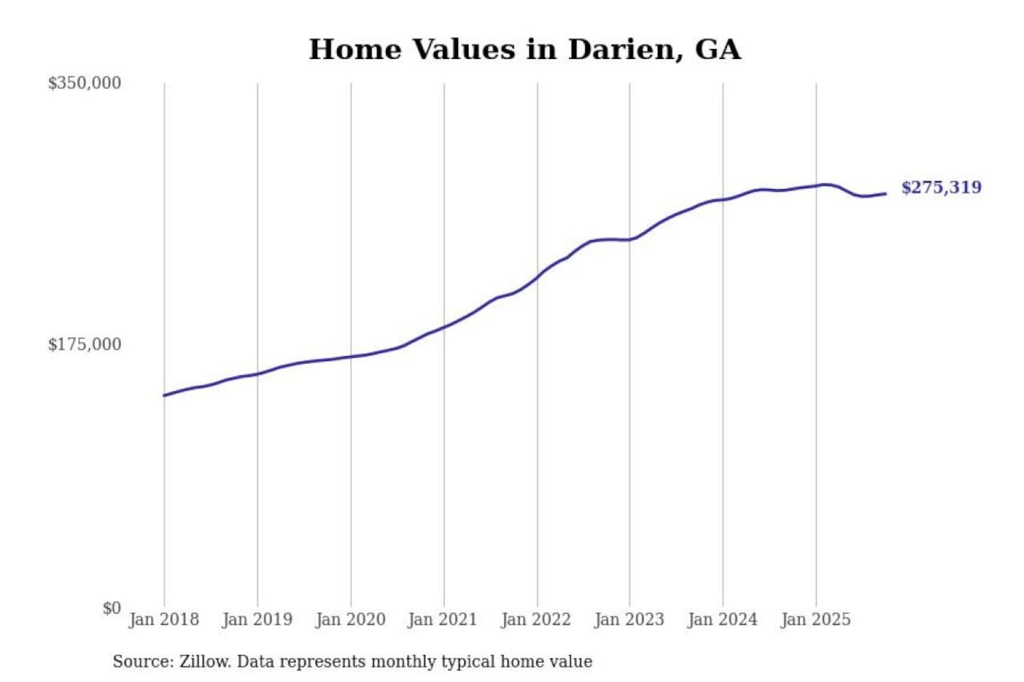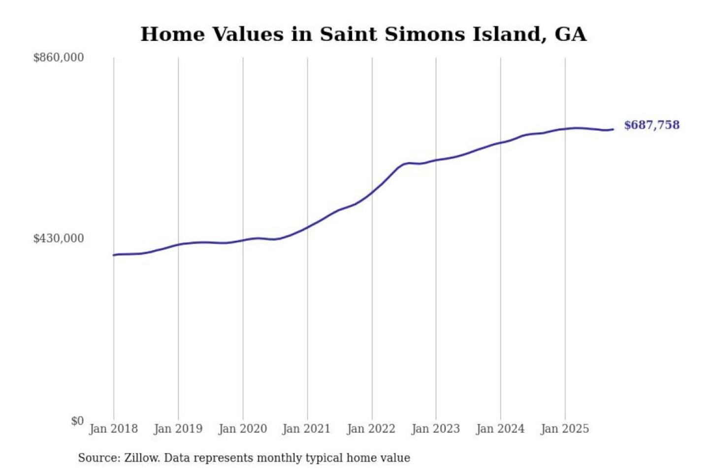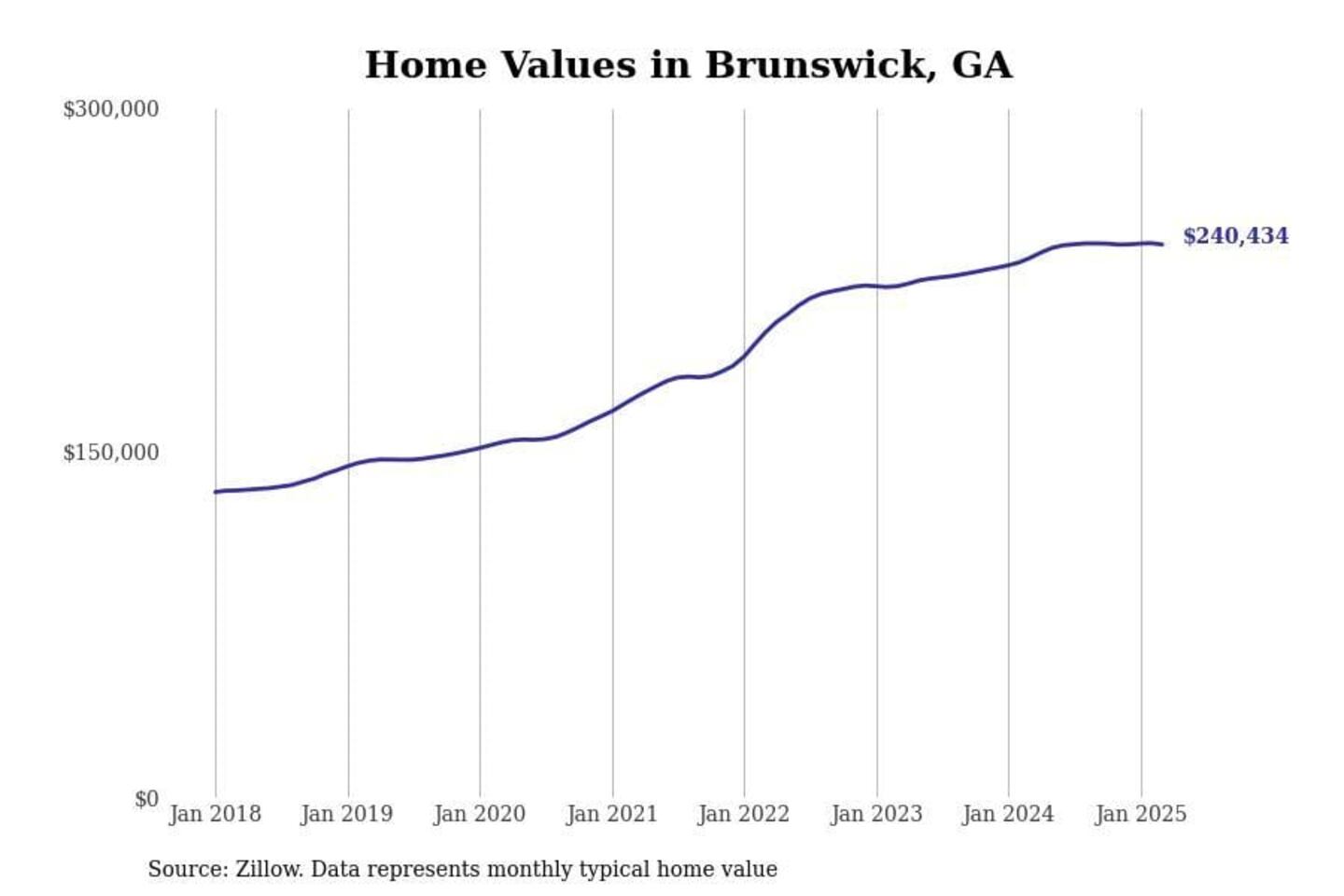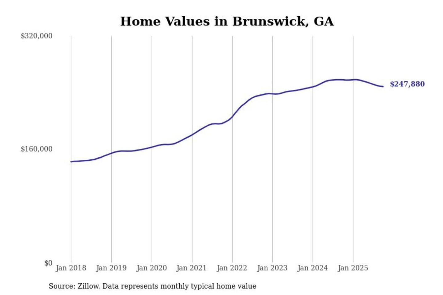 Stacker compiled a list of cities with the most expensive homes in the Brunswick, GA metro area using data from Zillow. Charts show the monthly typical home value since January 2018.