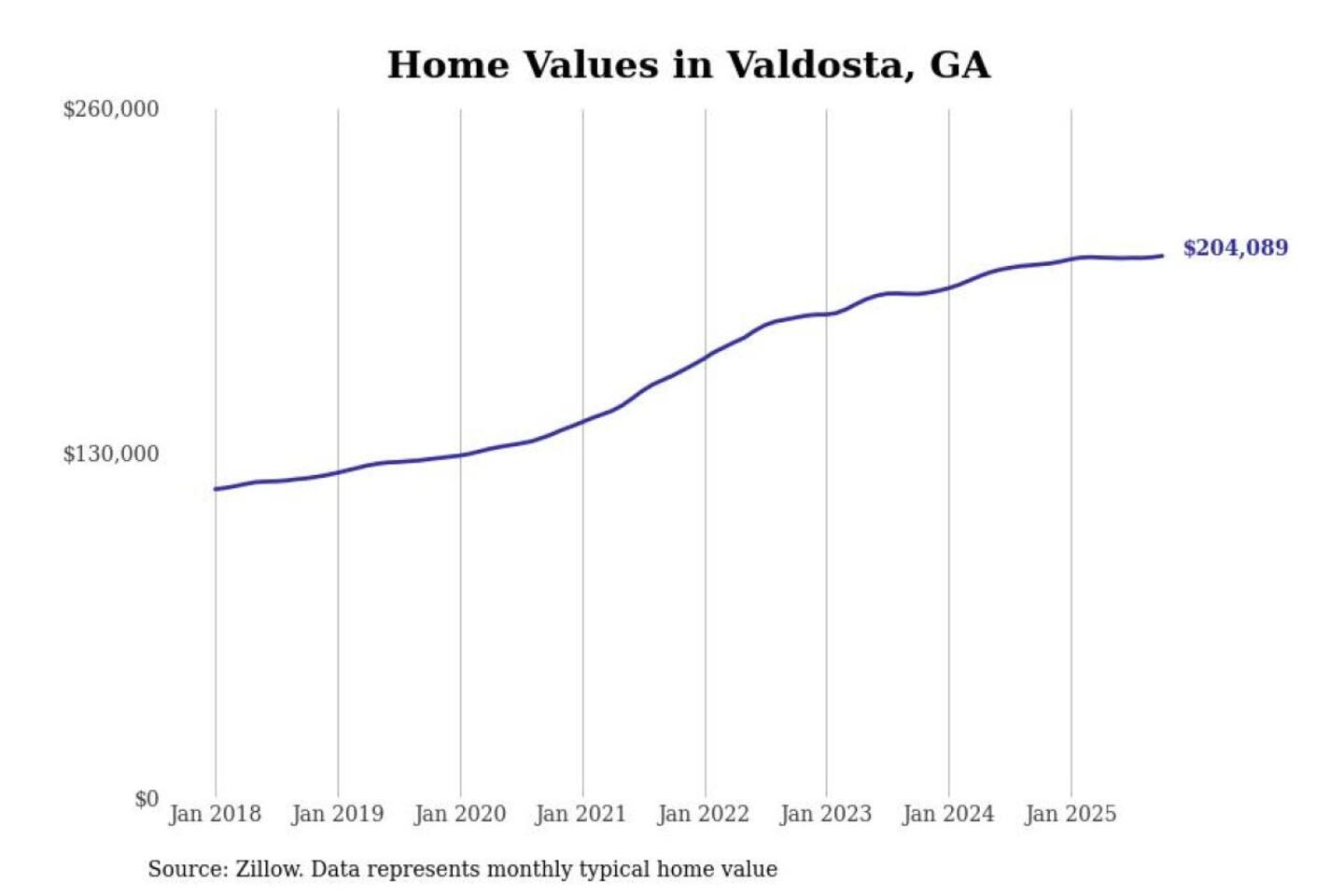 Stacker compiled a list of cities with the most expensive homes in the Valdosta, GA metro area using data from Zillow. Charts show the monthly typical home value since January 2018.