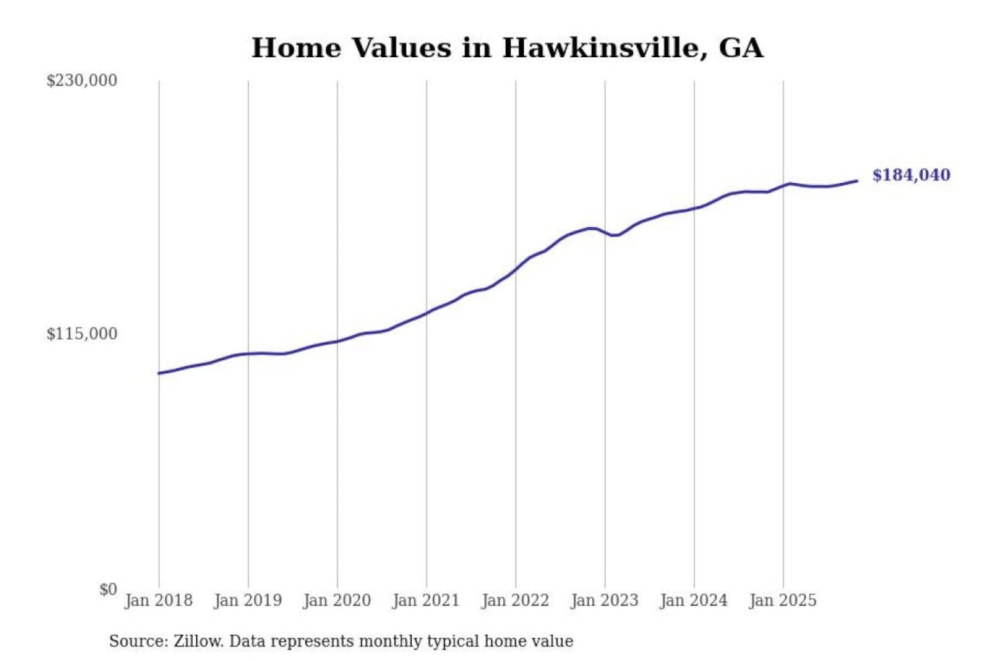 Stacker compiled a list of cities with the most expensive homes in the Warner Robins, GA metro area using data from Zillow. Charts show the monthly typical home value since January 2018.