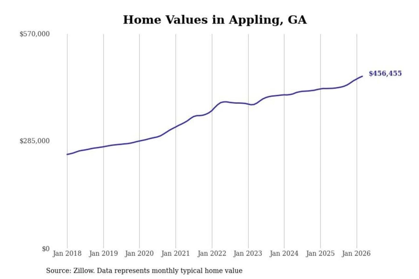 Stacker compiled a list of cities with the most expensive homes in the Augusta-Richmond County, GA-SC metro area using data from Zillow. Charts show the monthly typical home value since January 2018.