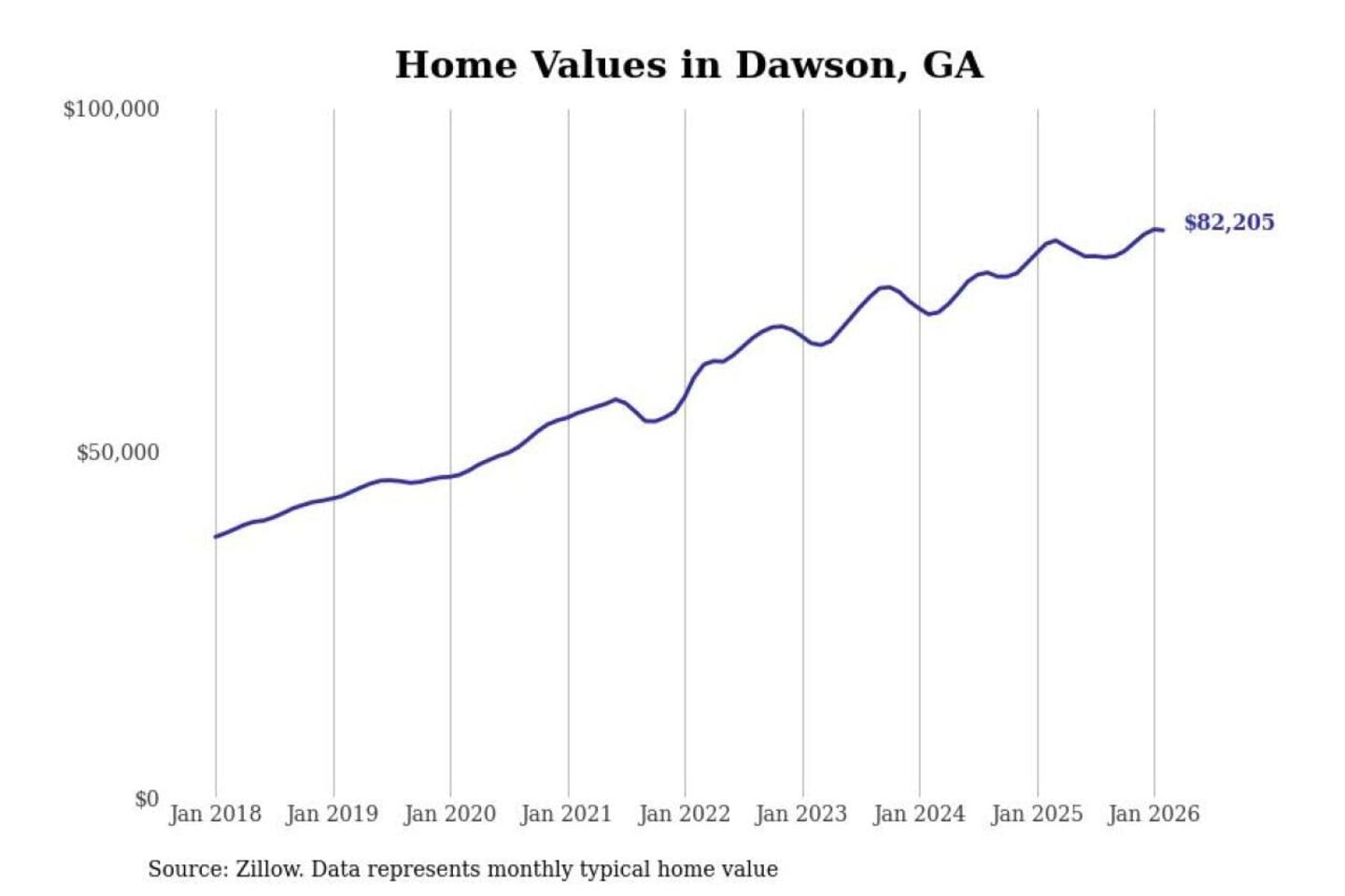 Stacker compiled a list of cities with the most expensive homes in the Albany, GA metro area using data from Zillow. Charts show the monthly typical home value since January 2018.