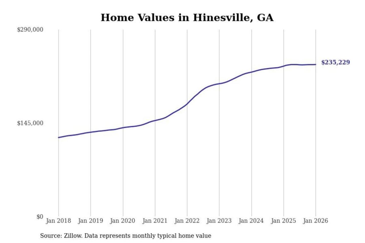 Cities with the fastest-growing home prices in the Hinesville metro area