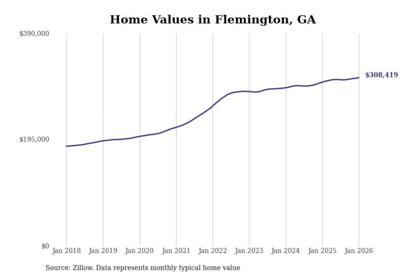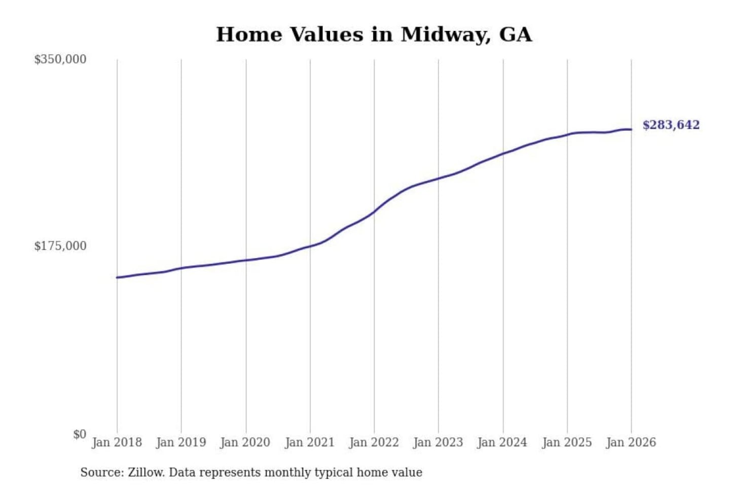 Stacker compiled a list of cities with the most expensive homes in the Hinesville, GA metro area using data from Zillow. Charts show the monthly typical home value since January 2018.