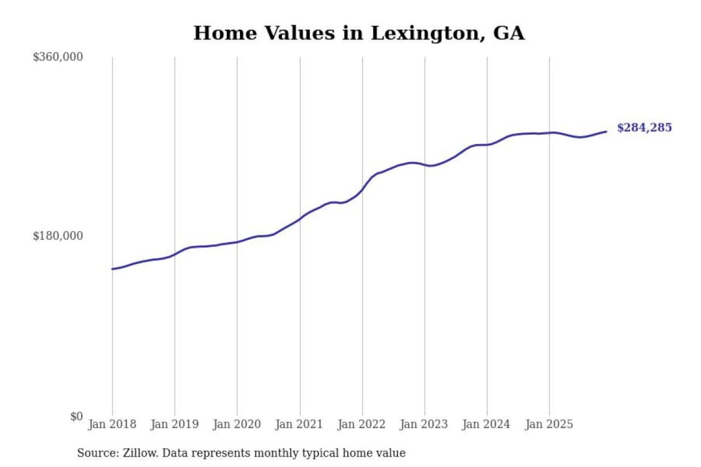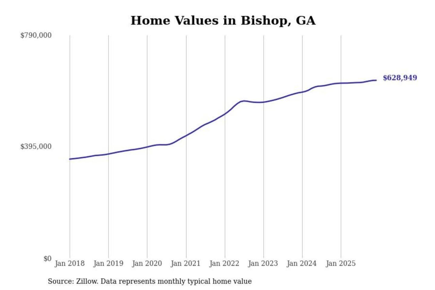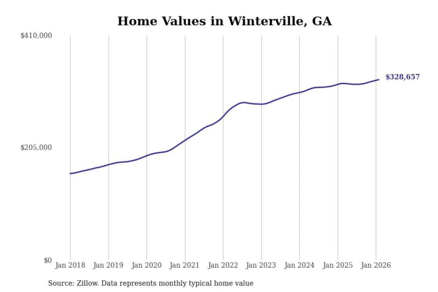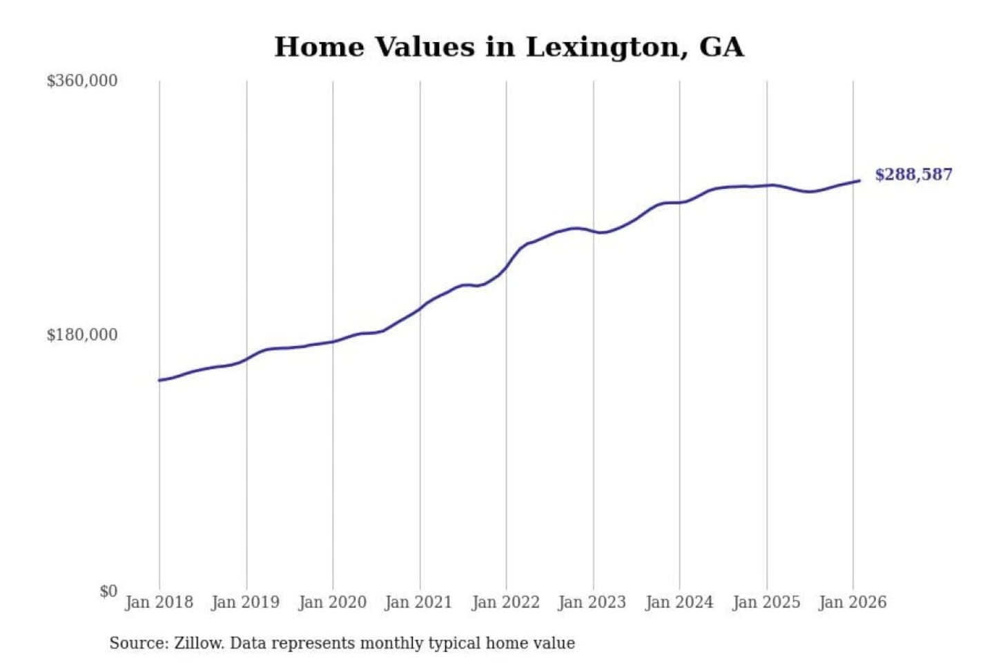 Stacker compiled a list of cities with the most expensive homes in the Athens-Clarke County, GA metro area using data from Zillow. Charts show the monthly typical home value since January 2018.