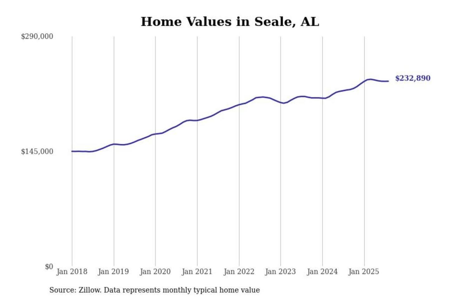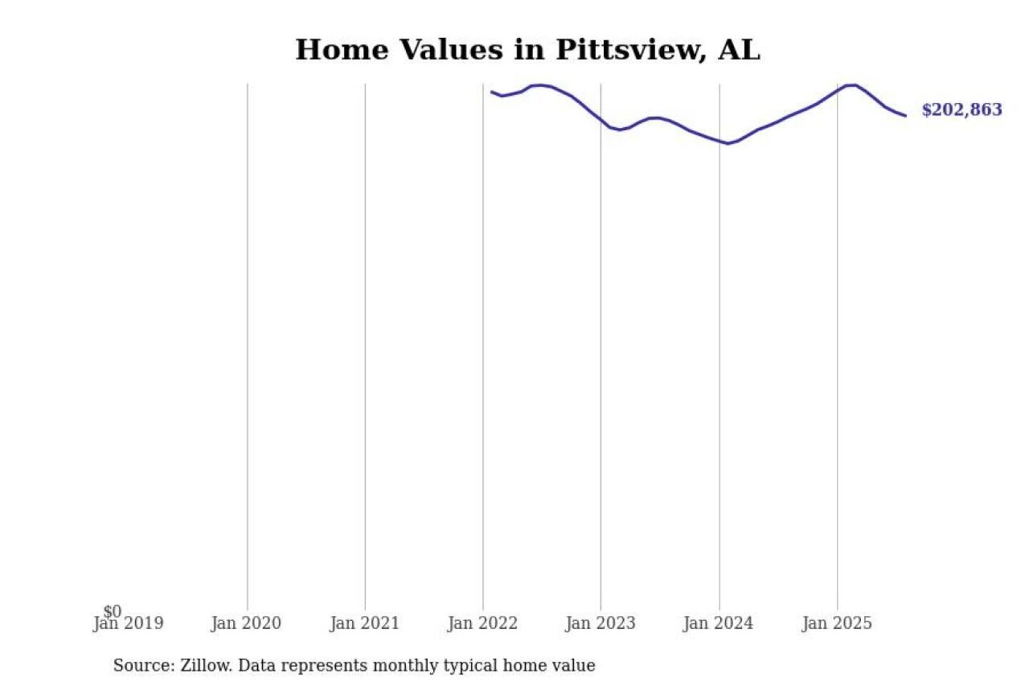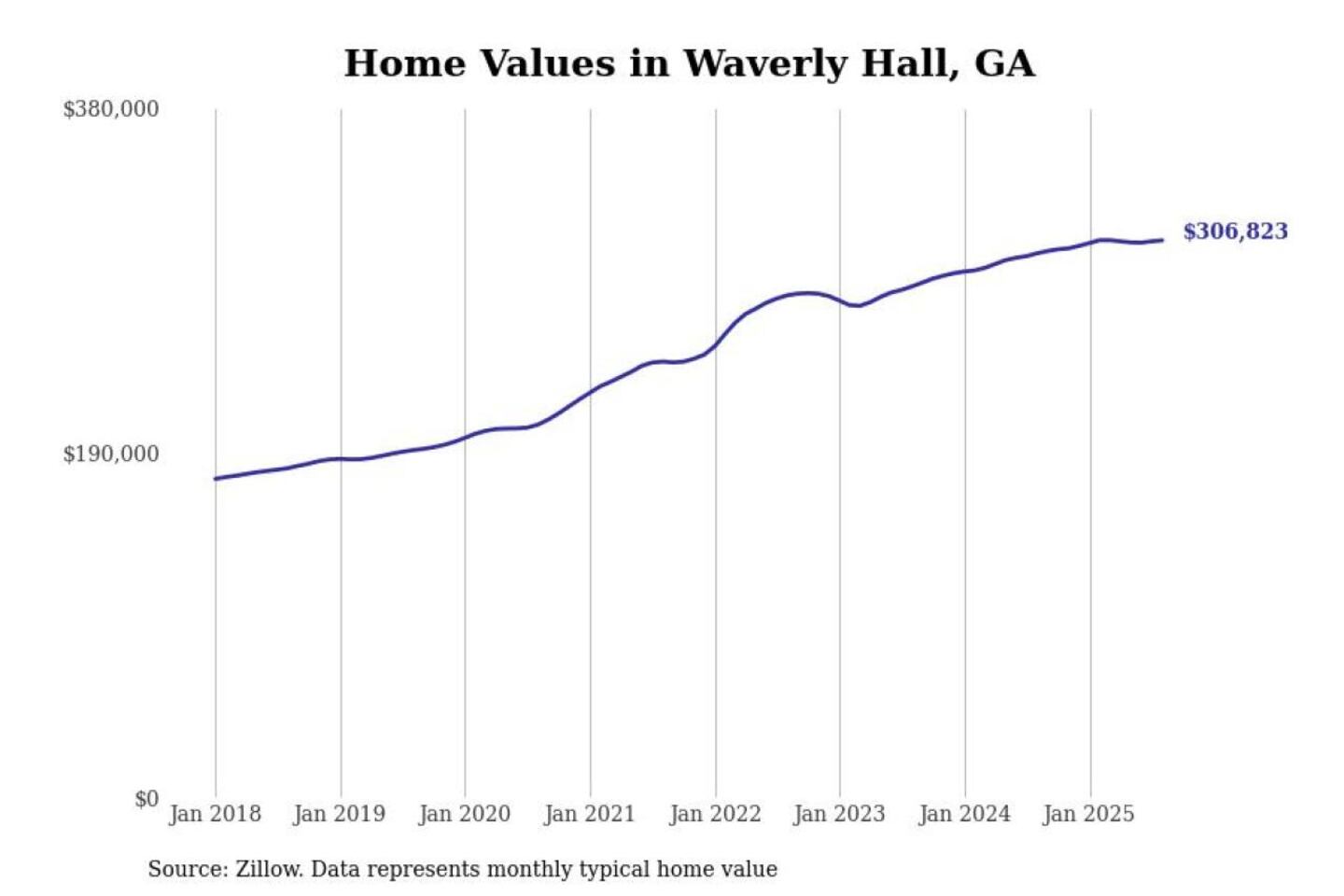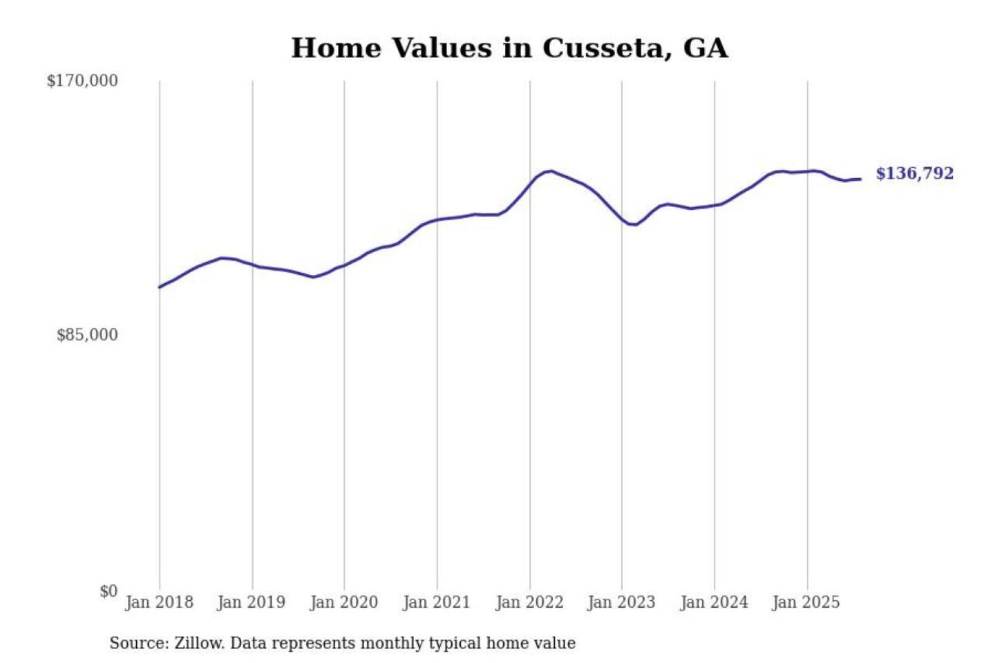 Stacker compiled a list of cities with the most expensive homes in the Columbus, Georgia metro area using data from Zillow. Charts show the monthly typical home value since January 2018. All 23 cities and towns with data available were included in the list.