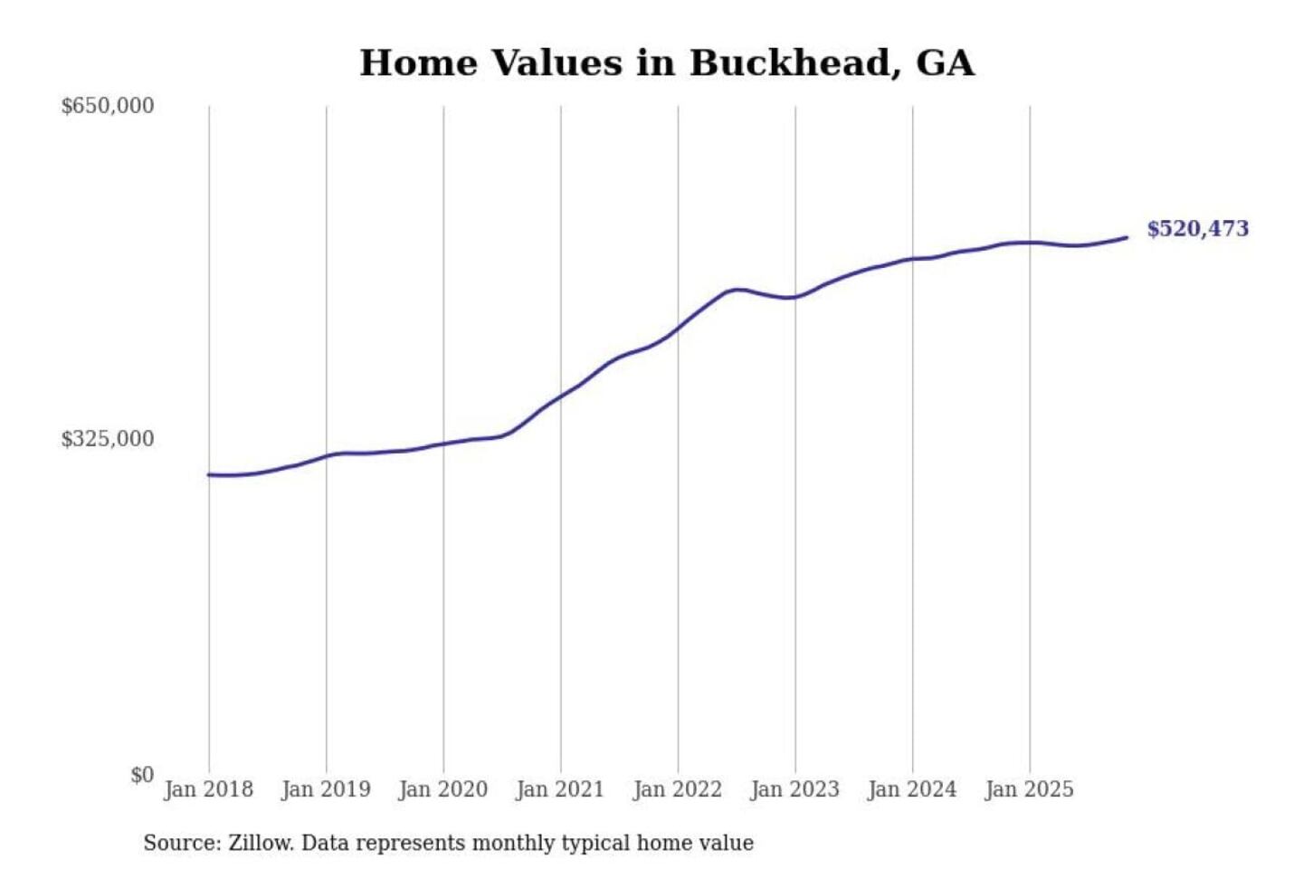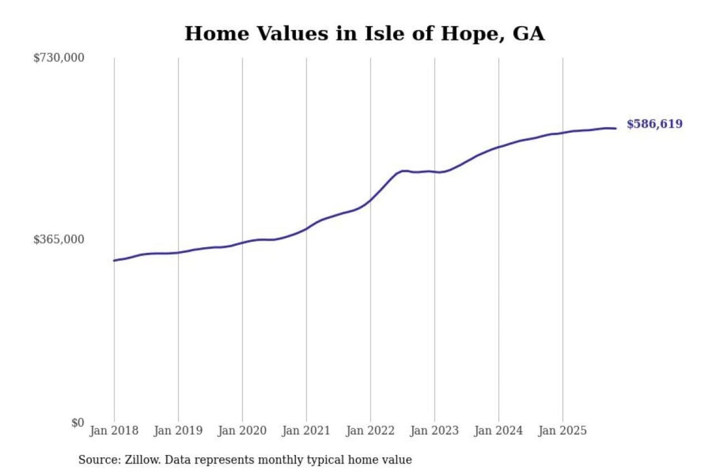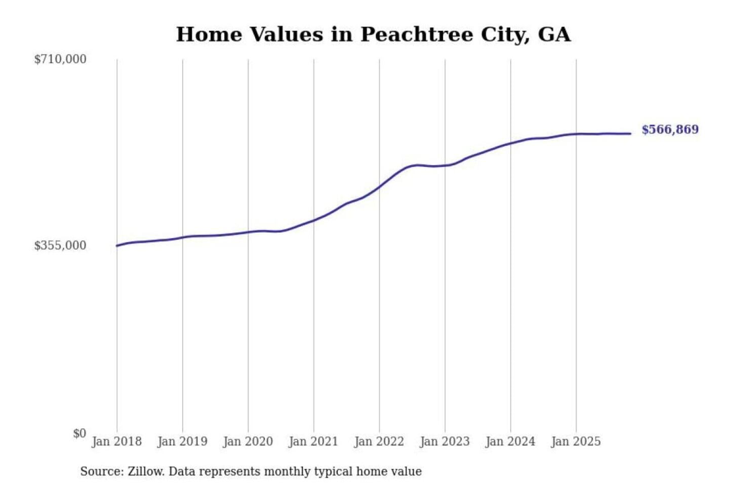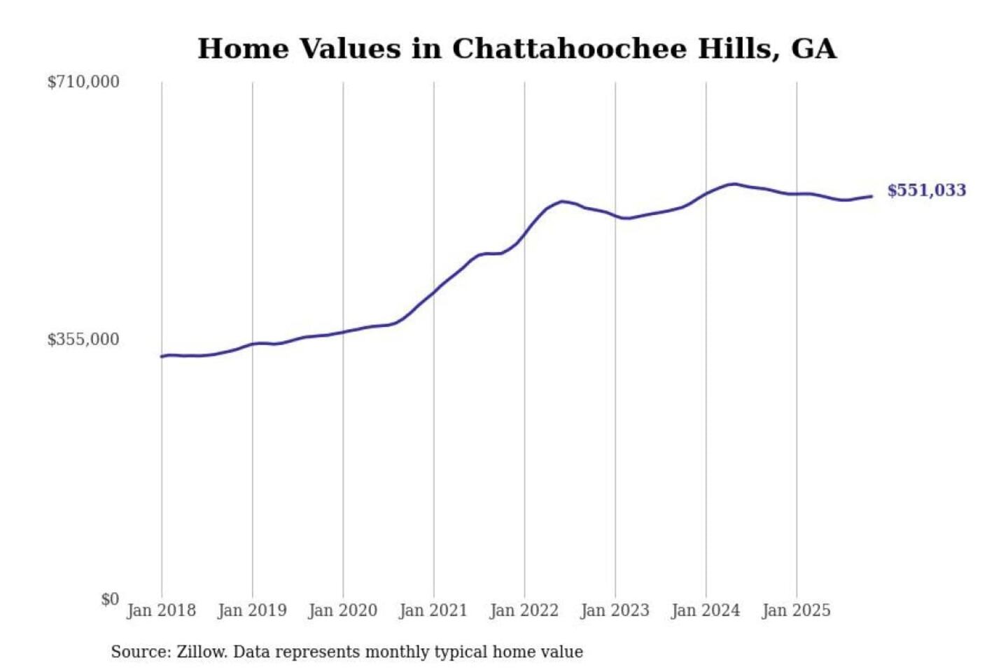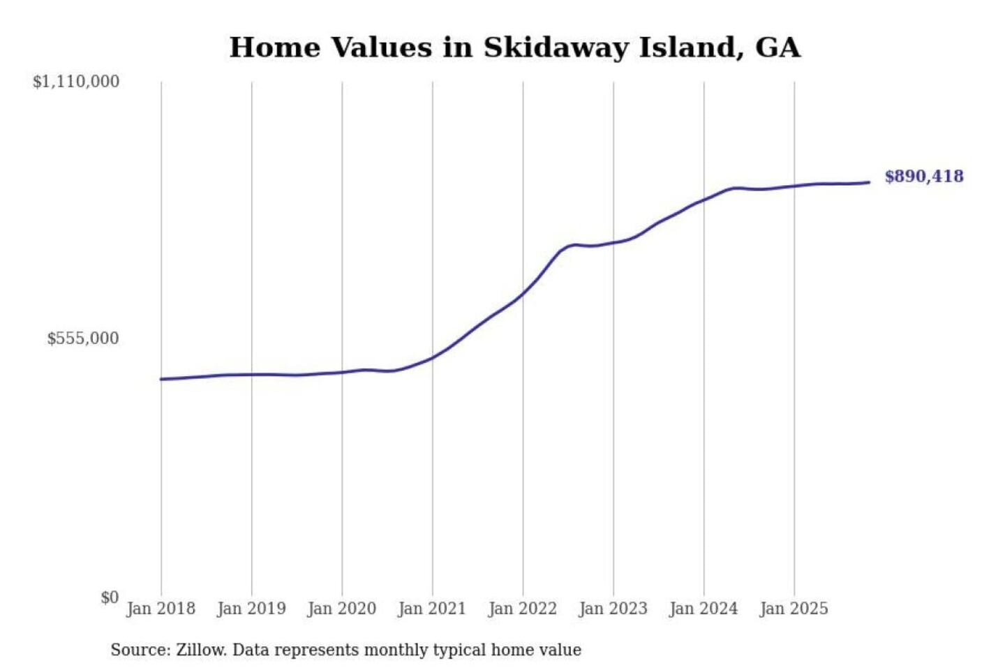 Stacker compiled a list of cities with the most expensive homes in Georgia using data from Zillow. Cities are ranked by the Zillow Home Values Index for all homes as of November 2025. The charts in this story were created automatically using Matplotlib.
