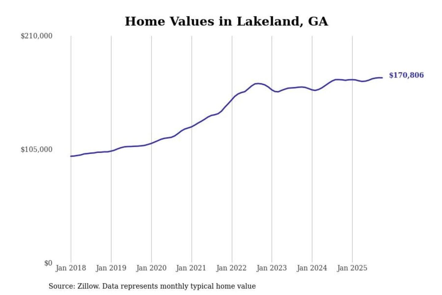 Stacker compiled a list of cities with the most expensive homes in the Valdosta metro area using data from Zillow. Charts show the monthly typical home value since January 2018. All 17 cities and towns with data available were included in the list.