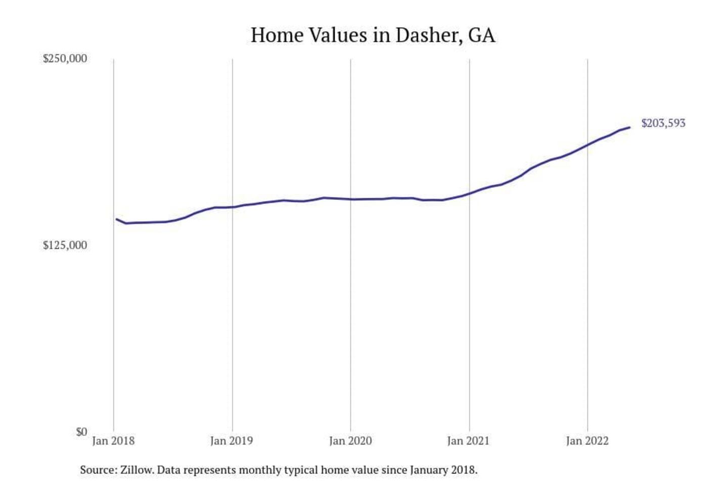 Stacker compiled a list of cities with the most expensive homes in the Valdosta metro area using data from Zillow. Charts show the monthly typical home value since January 2018. All 17 cities and towns with data available were included in the list.