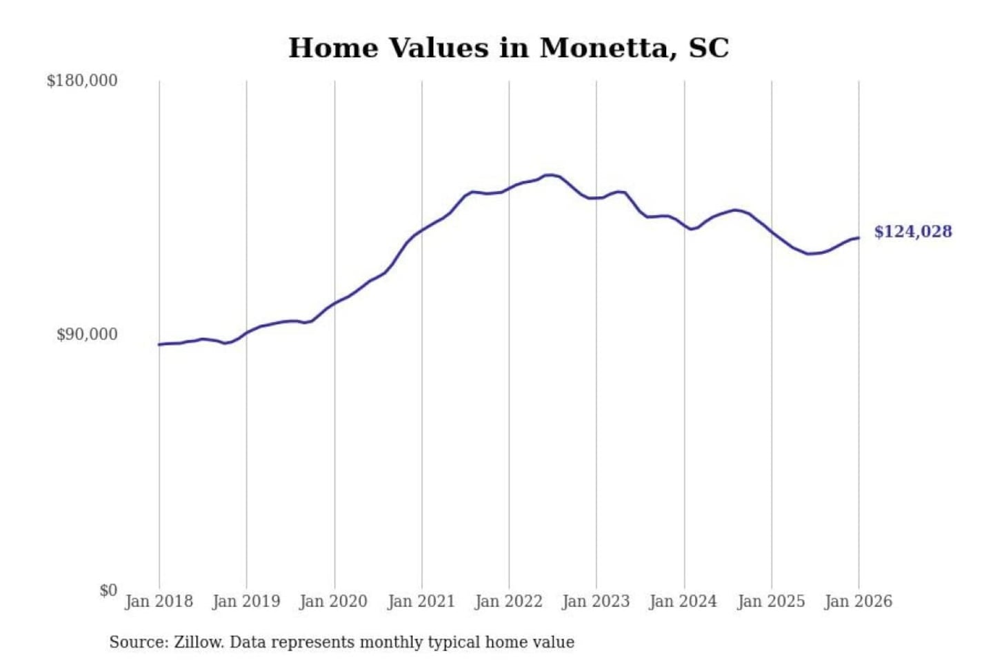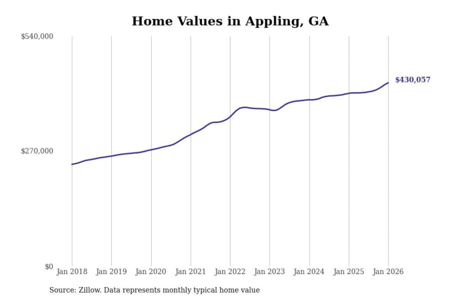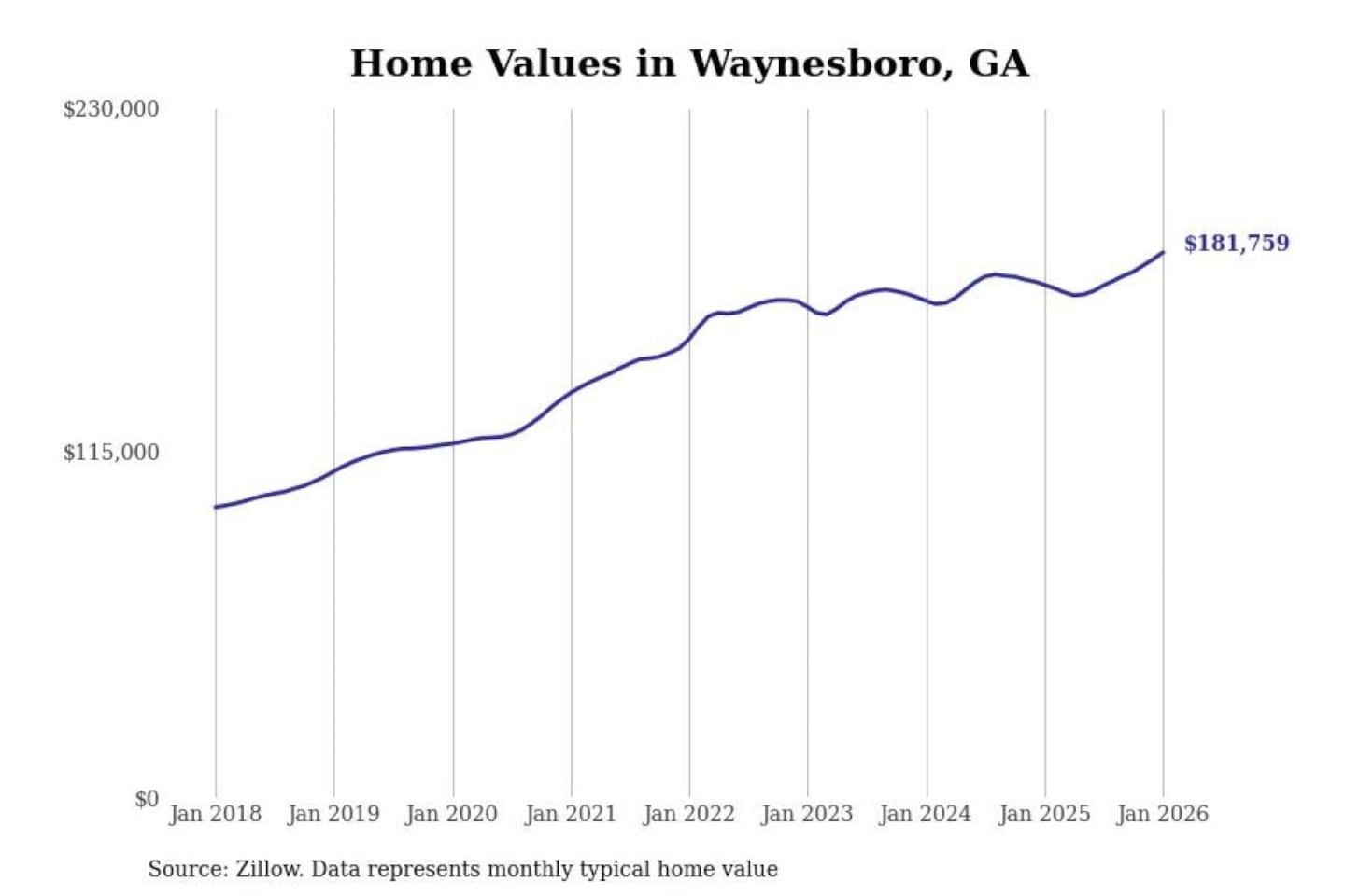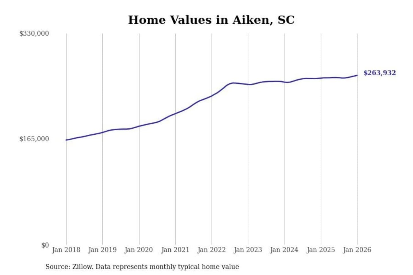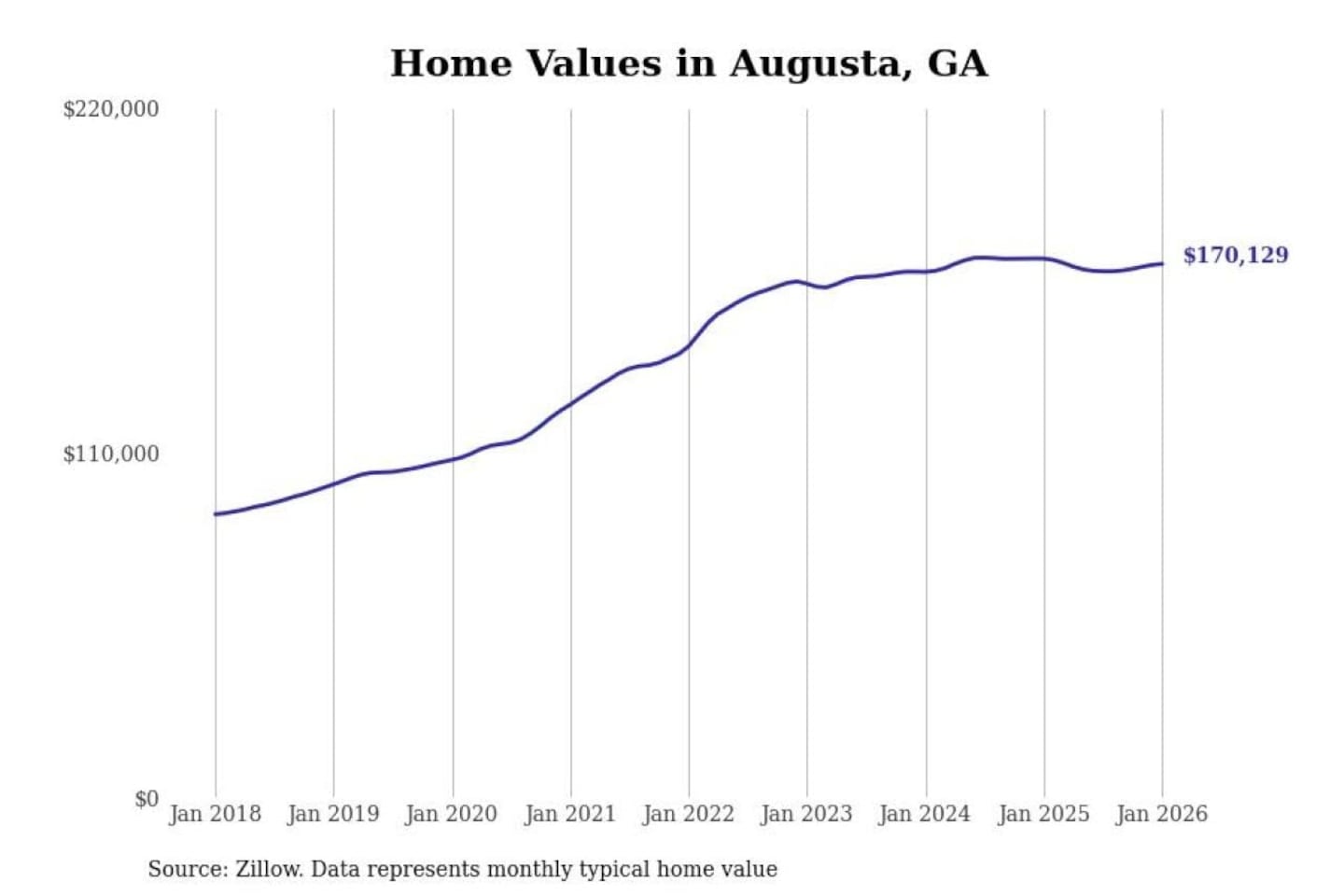Stacker compiled a list of cities with the most expensive homes in the Augusta metro area using data from Zillow. Charts show the monthly typical home value since January 2018. Data was available for 34 cities and towns.