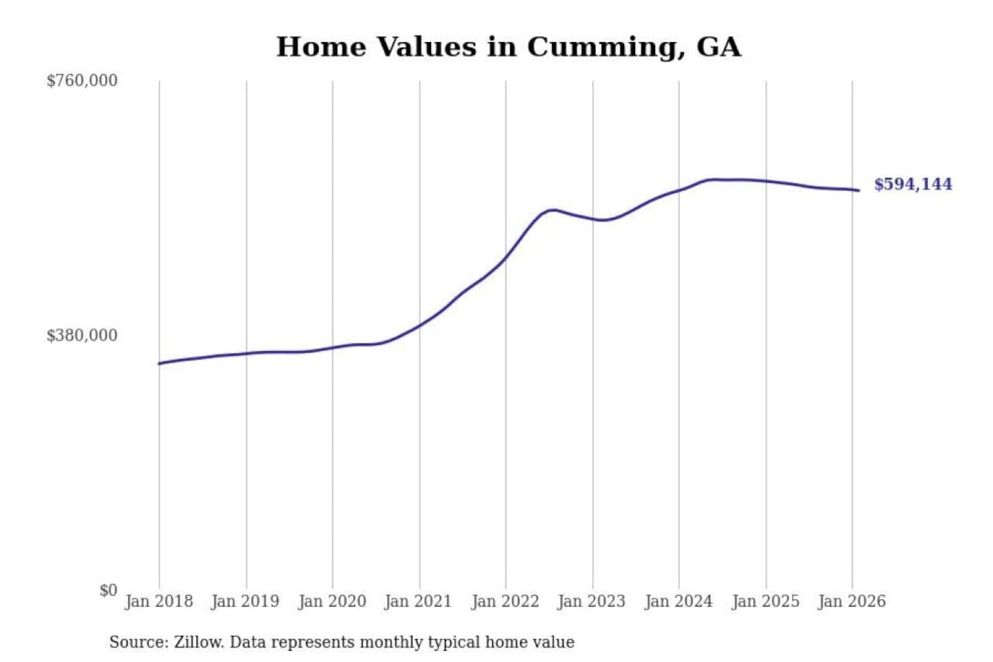 - Typical home value: $594,144