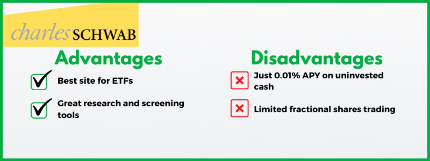 There's a strong argument that Schwab was already No. 1 in terms of giving you tools to research individual companies and ETFs. Then it acquired one of its two top competitors in the research space: TD Ameritrade. It would be tough now for any competitor to claim research tools that even approach what Schwab offers.