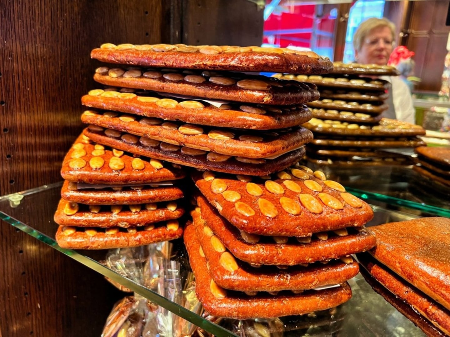 Aachen sits near Germany's borders with Belgium and the Netherlands, a region that once easily imported sweeteners like sugar and honey. But in the 1800s, the Napoleonic Wars stifled supply chains, and locals improvised to make their sweets with beet sugar. Bakers soon added cinnamon, cloves, coriander and orange zest to create Printen, a ginger-free gingerbread cookie that became a local trademark. It's called "printen" because designs are stamped into the top to make an imprint. You can find it throughout the Aachen Christmas Market. It's excellent dipped into a warm drink.