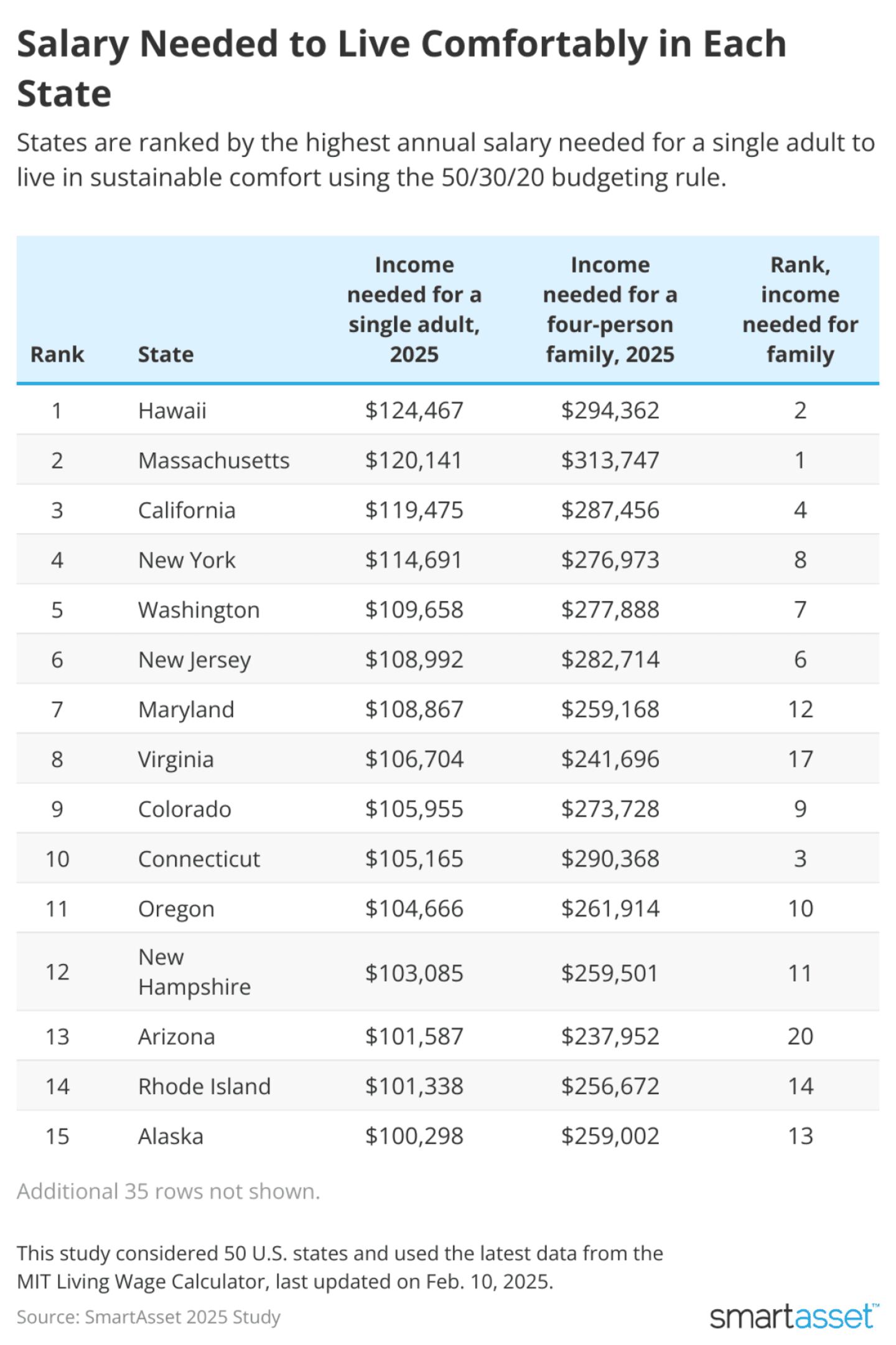 Top 10 States Where the Salary Needed to Live Comfortably Is Highest
