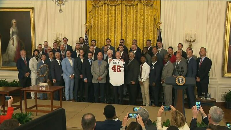 On Monday morning, President Joe Biden hosted the Braves at a White House ceremony, alongside other Atlanta leaders.