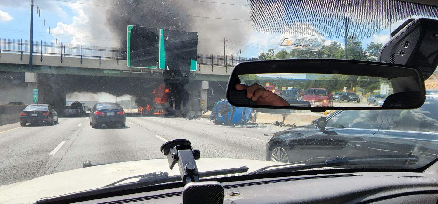 ATLANTA — A massive tractor-trailer fire has shut down all lanes of I-285 in both directions as well as Ashford Dunwoody Road.