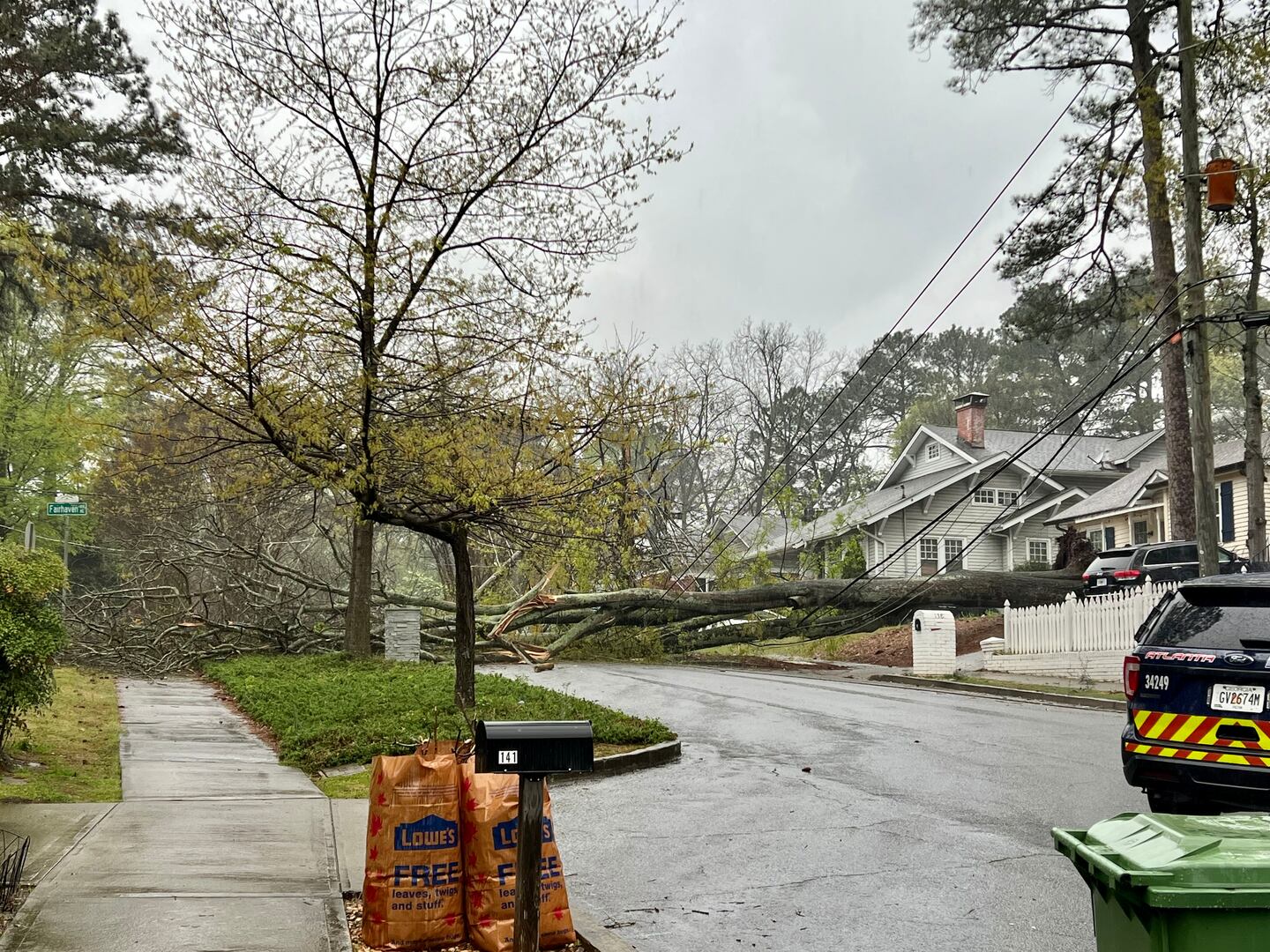 Another large tree fell in the Peachtree Hills neighborhood in metro Atlanta, knocking out power to the area.