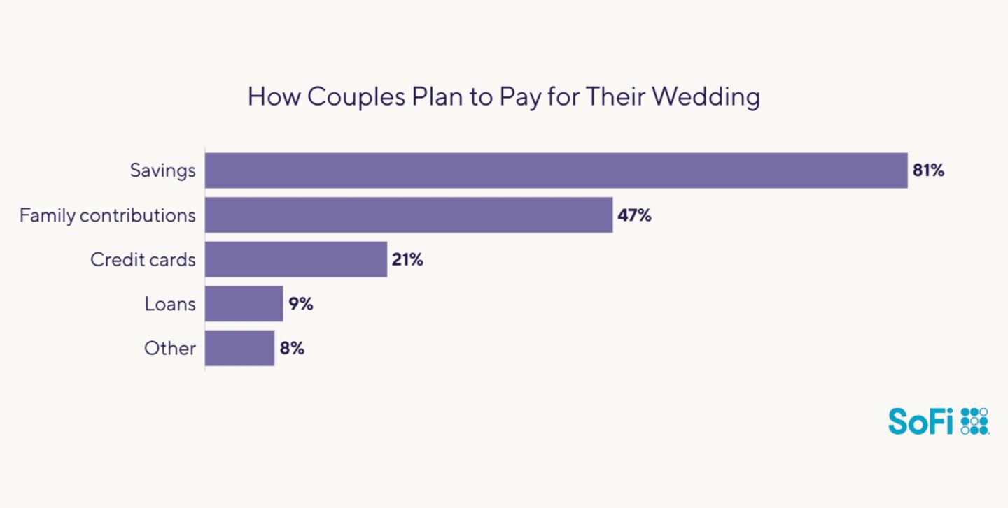 A wedding is a huge expense — the average wedding in the U.S. costs $33,000, according to The Knot. For many couples, figuring out how much to spend and how to pay for their wedding day is the one of the first major money issues they may confront together. SoFi’s survey uncovered these intriguing truths about wedding spending.