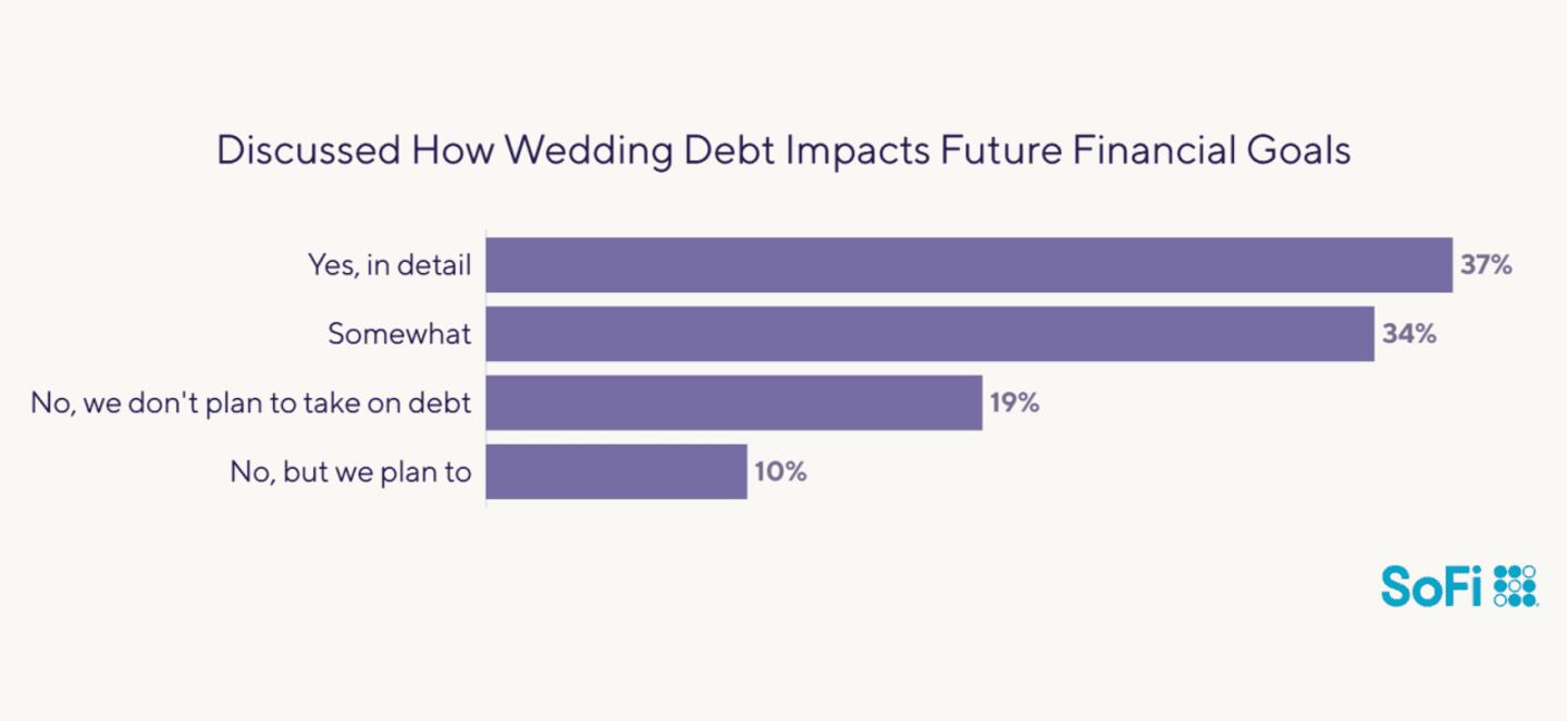 Considering that the cost of a wedding can run well into the tens of thousands of dollars, as noted above, survey respondents are confronting the issue by talking about it. And almost 1 in 5 said they don’t plan to take on wedding debt.