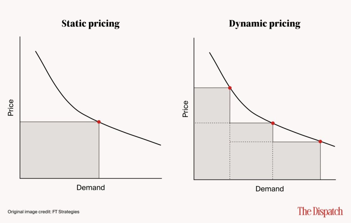 If the price people are willing to pay falls on a curve, as some of us learned in economics class, a uniform price can meet demand at only one point on that curve. Dynamic pricing can theoretically meet at many points along that curve: