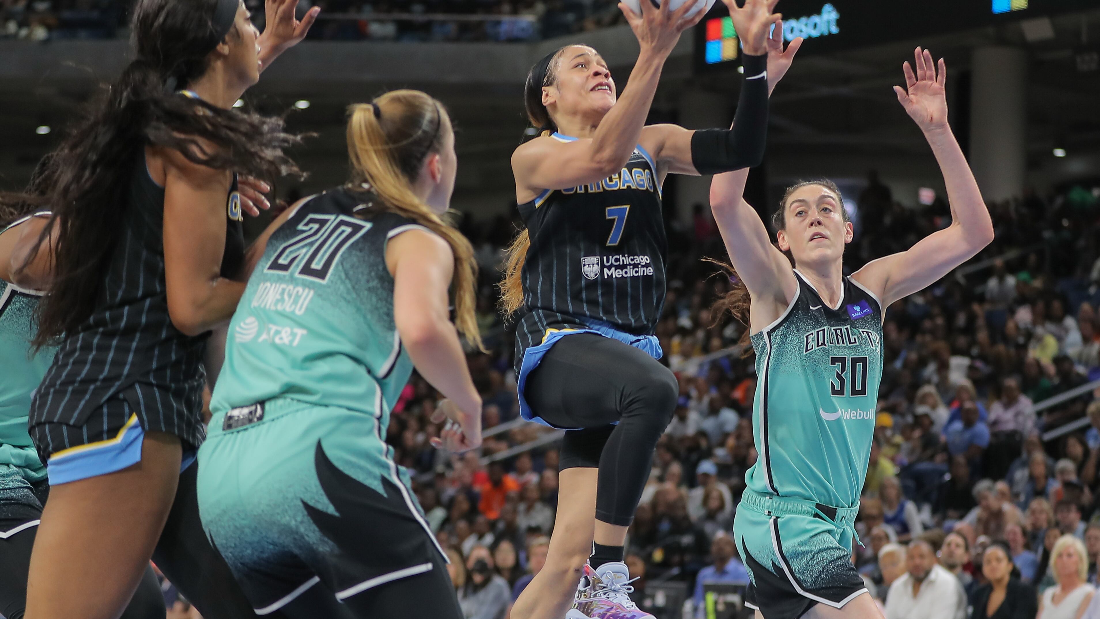 WNBA: JUN 04 New York Liberty at Chicago Sky CHICAGO, IL - JUNE 04: Chennedy Carter #7 of the Chicago Sky drives to the basket during the second half against the New York Liberty on June 4, 2024 at Wintrust Arena in Chicago, Illinois. (Photo by Melissa Tamez/ Icon Sportswire) (Icon Sportswire/Icon Sportswire via Getty Images)