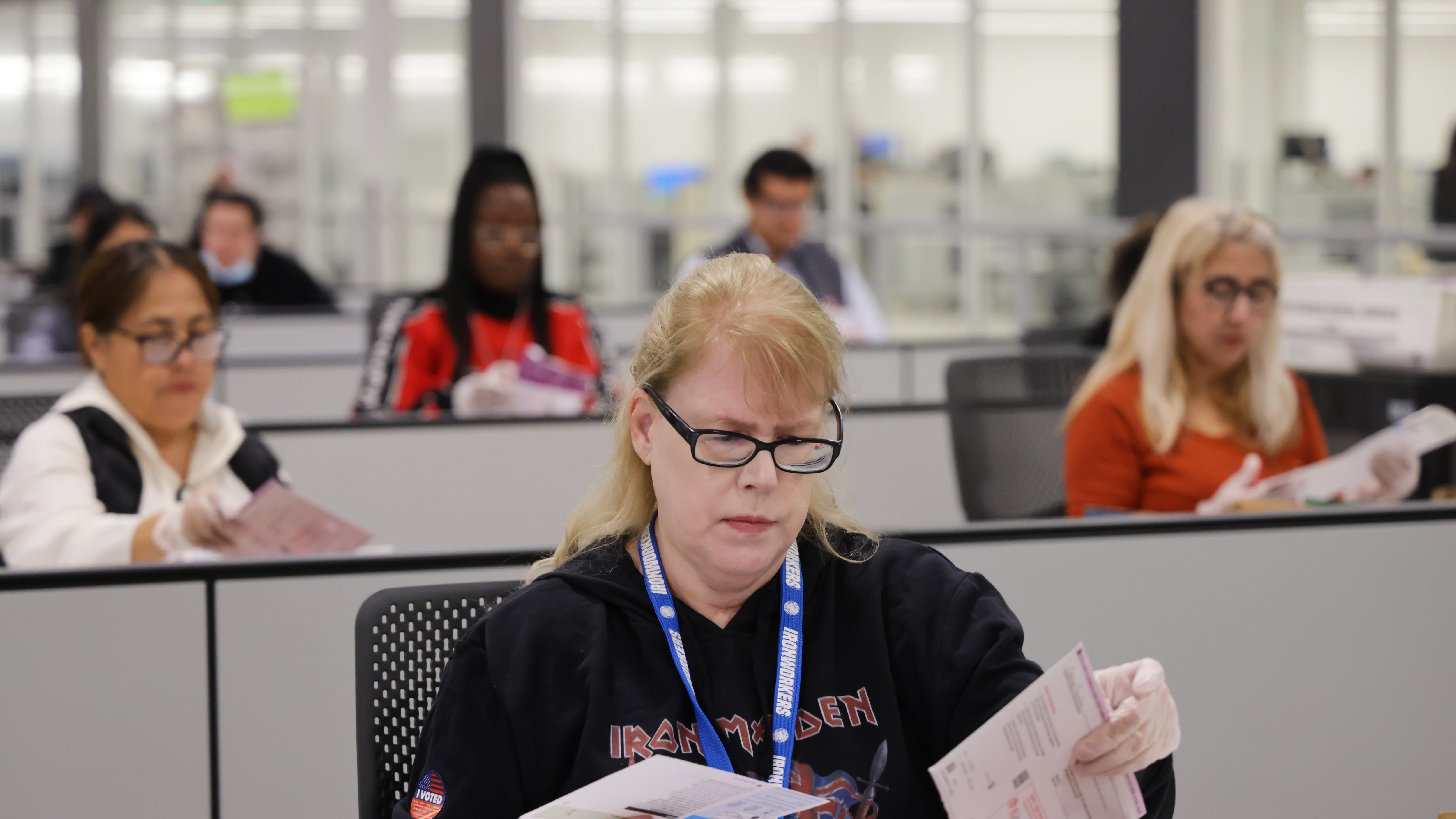 Election 2025 America Votes A worker examines ballots at the L.A. County Ballot Processing Center on Tuesday, Nov. 4, 2025, in City of Industry, Calif. (AP Photo/Ethan Swope) (Ethan Swope/AP)