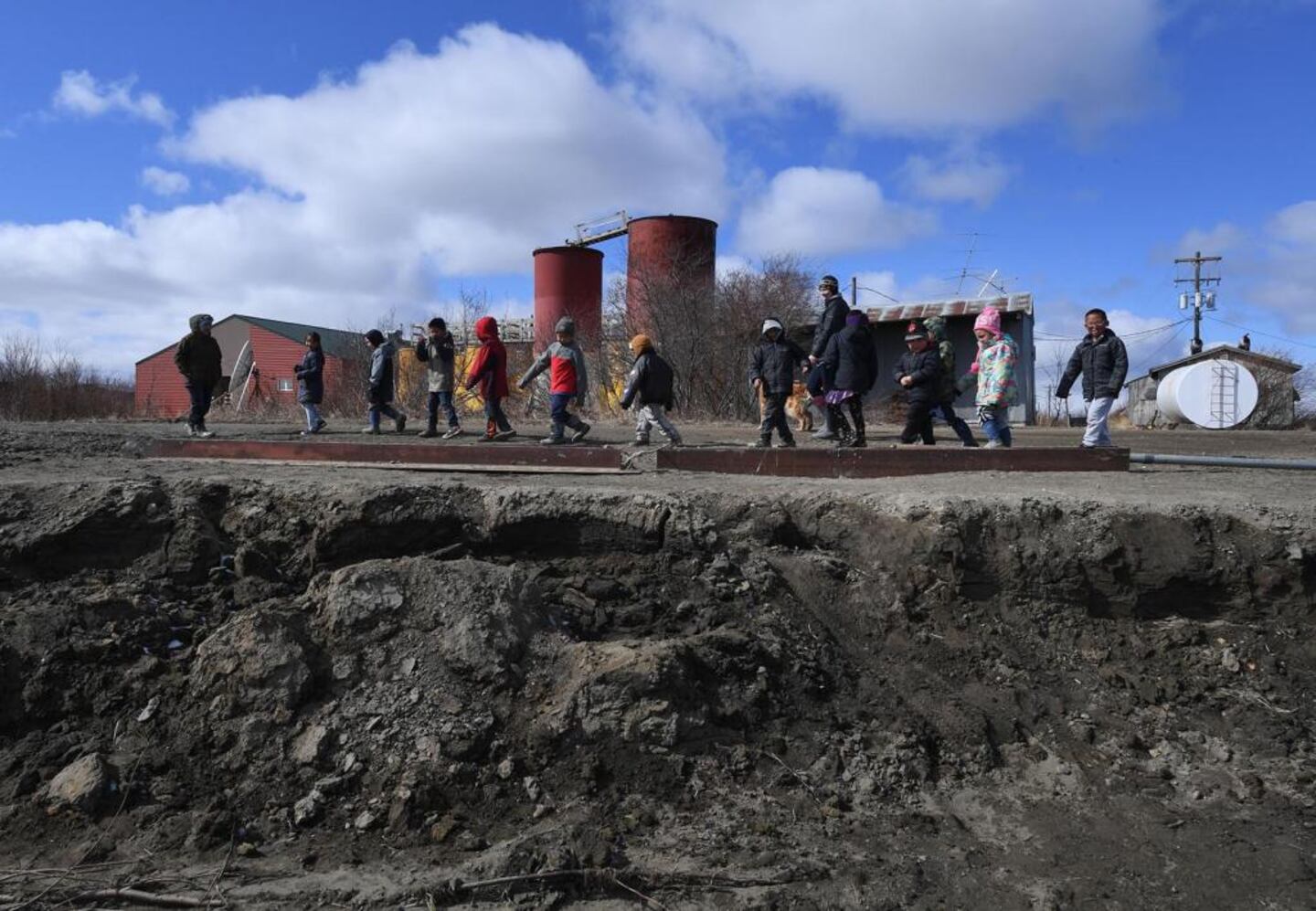 Stephanie Alexie awoke one morning to find her home surrounded by water too deep to wade through. “It looked like the ocean,” she recalled. Neighboring houses appeared barely suspended on top of rippling blue pools—mirrors reflecting the clear sky. In the distance, the wooden boardwalk built over marshy tundra dropped off into a vast sea. Alexie and her children were stranded until neighbors came by with a boat to her corner of Nunapitchuk, a Yup’ik village of roughly 550 people.