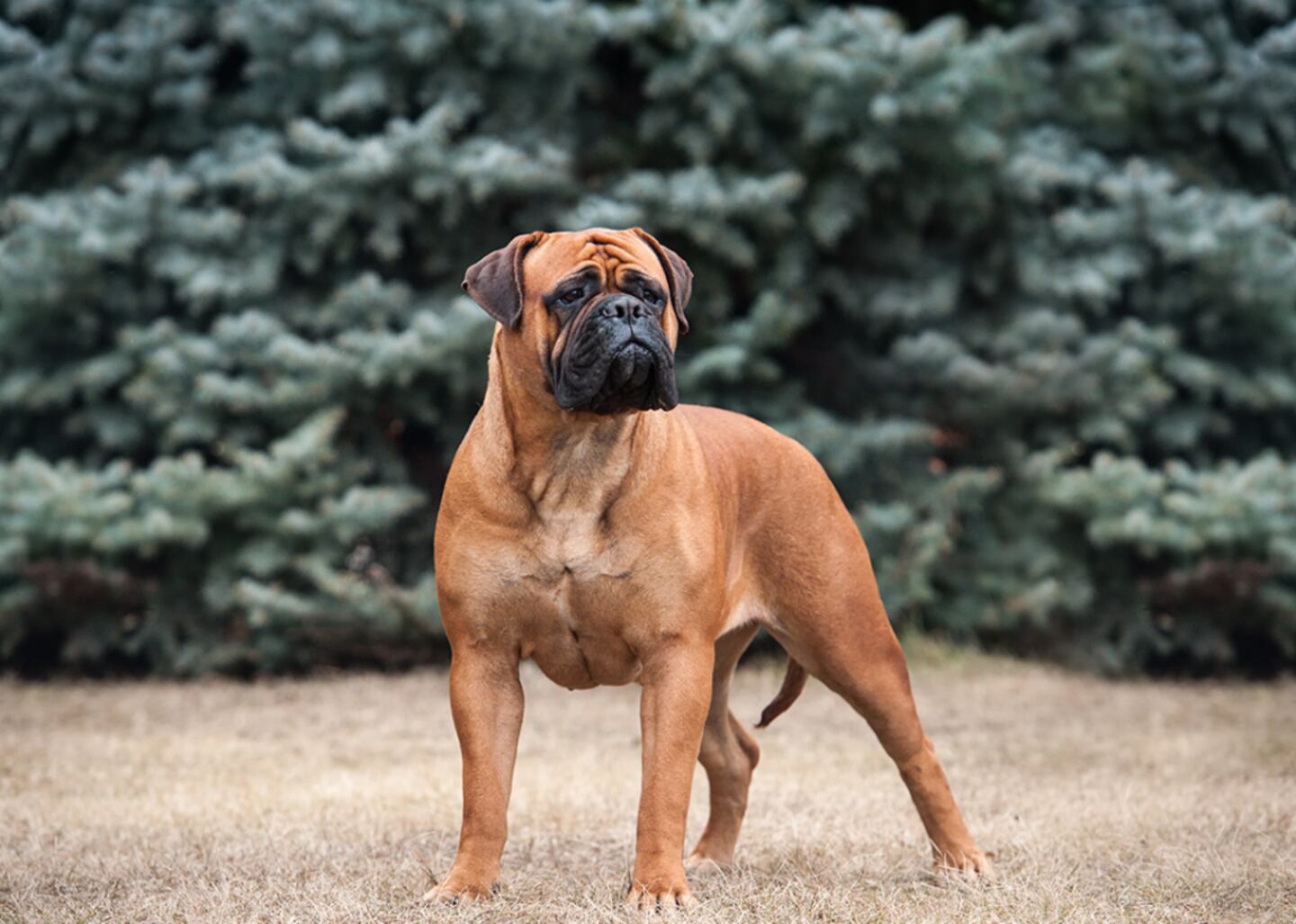 These massive working dogs hailing from England were once used to catch exotic game: poachers. Bullmastiffs are reliable family pets that make excellent guard dogs, although they don't live very long.