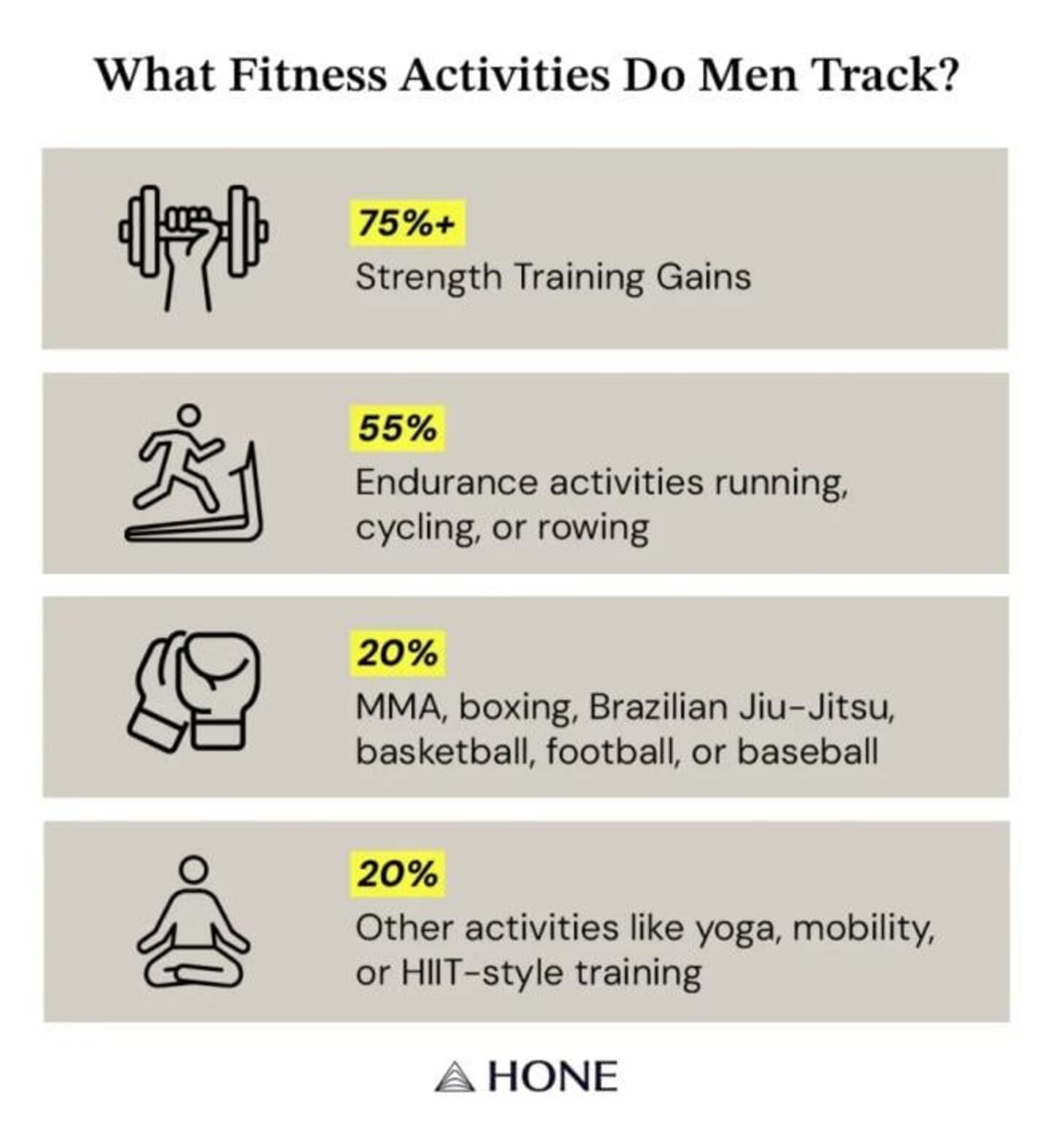In a recent Hone Health survey of more than 700 men in their online community, nearly three-quarters reported that they actively track health data. One in five said they were "deeply invested" in doing so, monitoring various data points daily and using them to guide their decisions around training, recovery, and diet.