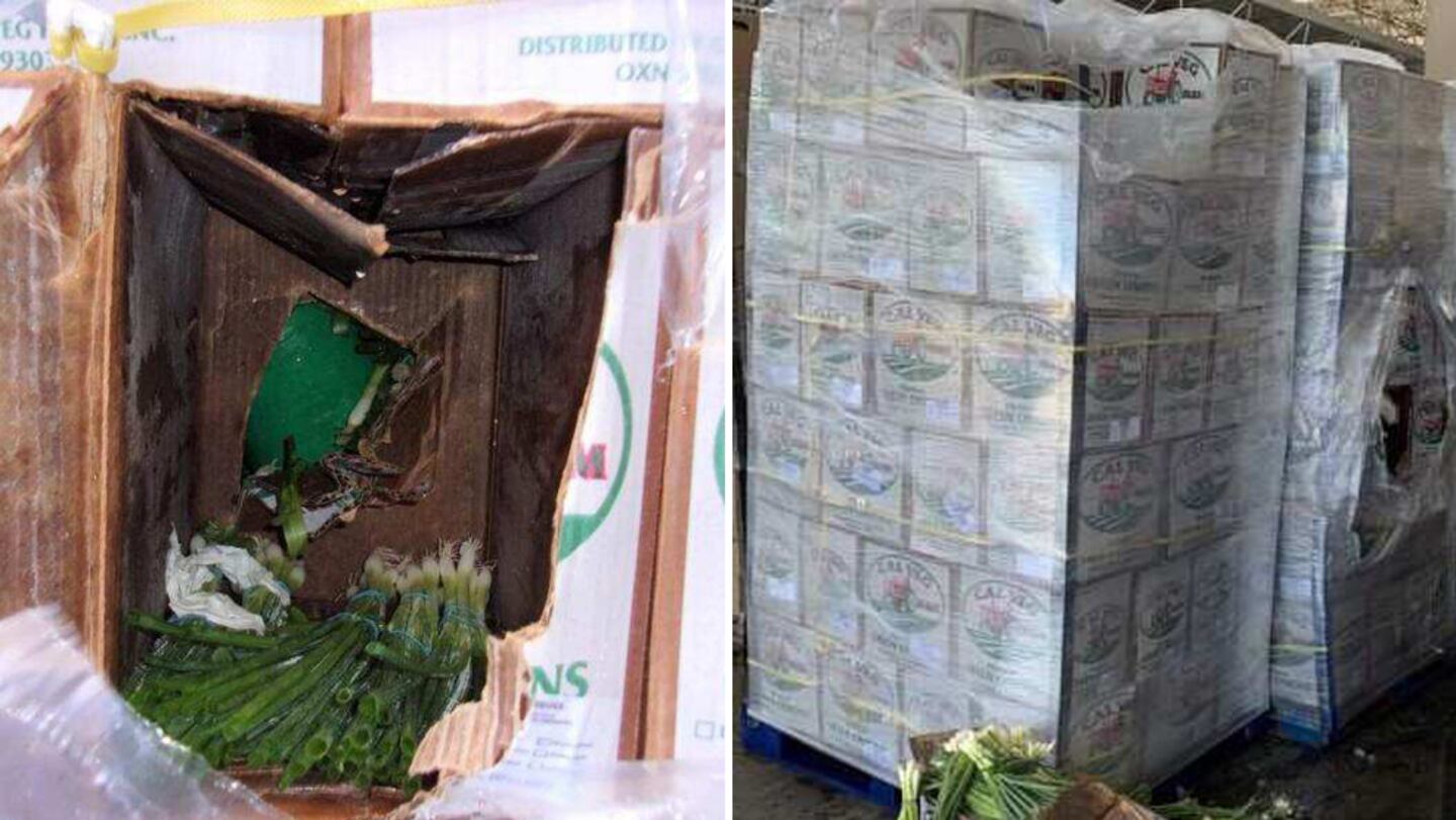 OTAY MESA, Calif. — Customs and Border Patrol agents on Sunday found over 600 pounds of methamphetamine hidden in a shipment of green onions in California.