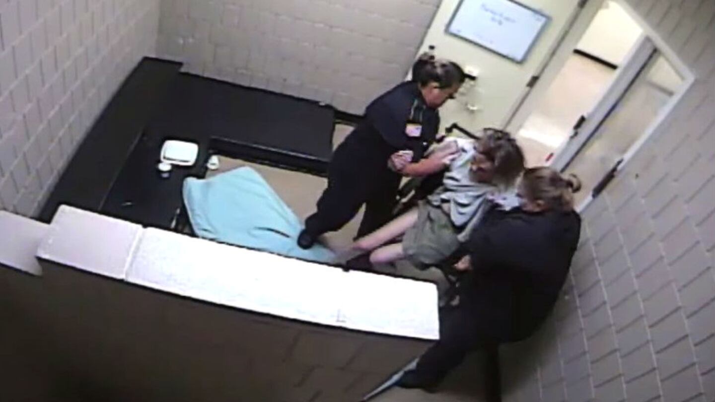 Still, she is left in the cell for another two hours before, shortly before 8 a.m., a guard and a nurse enter with a wheelchair and place her in it to take her for bloodwork in the medical office.