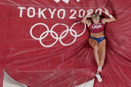 Photo: Katie Nageotte wins Olympic gold in women's pole vault Katie Nageotte, of the United States, competes in the finals of the women's pole vault at the 2020 Summer Olympics, Thursday, Aug. 5, 2021, in Tokyo. (AP Photo/Martin Meissner)