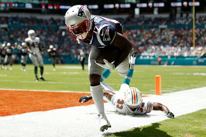 Through the years MIAMI, FLORIDA - SEPTEMBER 15: Antonio Brown #17 of the New England Patriots scores a 20 yard touchdown thrown by Tom Brady #12 against the Miami Dolphins during the second quarter in the game at Hard Rock Stadium on September 15, 2019 in Miami, Florida. (Photo by Michael Reaves/Getty Images) (Michael Reaves/Getty Images)