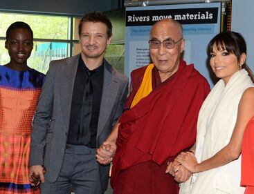 Jeremy Renner through the years LOS ANGELES, CA - FEBRUARY 26: (L-R) Actress Lupita Nyong'o, actor Jeremy Renner, His Holiness The 14th Dalai Lama and actress Eva Longoria attend The Lourdes Foundation "Leadership in the 21st Century" Event with His Holiness the 14th Dalai Lama at the California Science Center on February 26, 2014 in Los Angeles, California. (Photo by Chris Weeks/Getty Images for The Lourdes Foundation) (Chris Weeks)