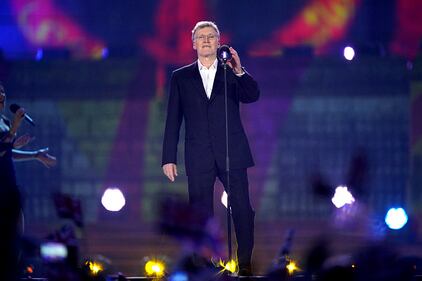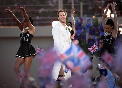 Coronation concert WINDSOR, ENGLAND - MAY 07: Singer Olly Murs performs during the Coronation Concert on May 7, 2023 in Windsor, England. The Windsor Castle Concert is part of the celebrations of the Coronation of Charles III and his wife, Camilla, as King and Queen of the United Kingdom of Great Britain and Northern Ireland, and the other Commonwealth realms that took place at Westminster Abbey yesterday. High-profile performers will entertain members of the royal family and 20,000 guests including 10,000 members of the public. (Photo by Kin Cheung-WPA Pool/Getty Images) (Kin Cheung/Getty Images)