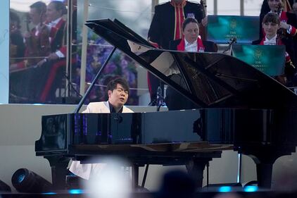 Coronation concert WINDSOR, ENGLAND - MAY 07: Pianist Lang Lang performs during the Coronation Concert on May 7, 2023 in Windsor, England. The Windsor Castle Concert is part of the celebrations of the Coronation of Charles III and his wife, Camilla, as King and Queen of the United Kingdom of Great Britain and Northern Ireland, and the other Commonwealth realms that took place at Westminster Abbey yesterday. High-profile performers will entertain members of the royal family and 20,000 guests including 10,000 members of the public. (Photo by Kin Cheung-WPA Pool/Getty Images) (Kin Cheung/Getty Images)