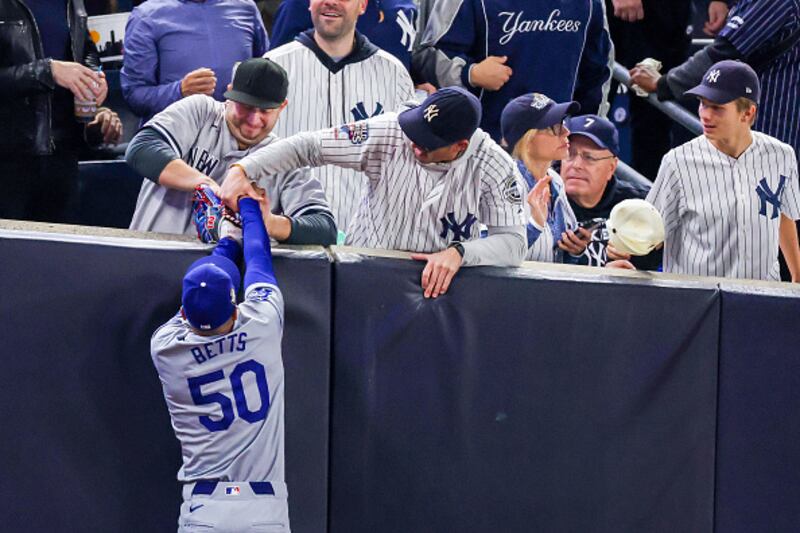 Mookie Betts was trying to catch a foul ball during the first inning. The ball appeared to be in the Dodgers’ star’s glove when one Yankees fan pried the glove open while the other held Betts’ other hand down. The ball ended up coming loose from the glove, CNN reported.