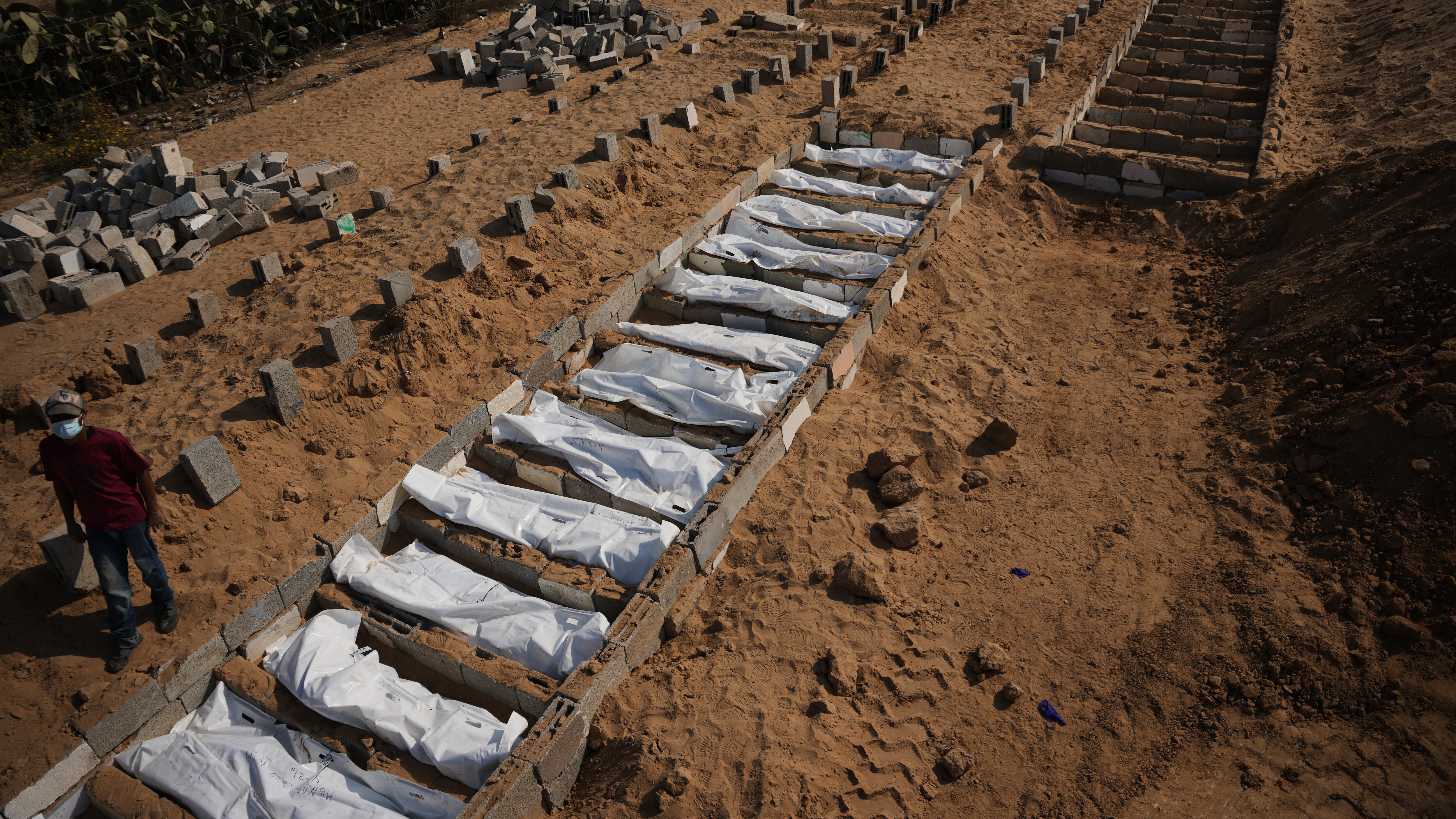 APTOPIX Israel Palestinians Gaza Bodies of unidentified Palestinians returned from Israel as part of the ceasefire deal are buried in a mass grave in Deir al-Balah, Gaza Strip, Wednesday, Nov. 5, 2025. (AP Photo/Abdel Kareem Hana) (Abdel Kareem Hana/AP)