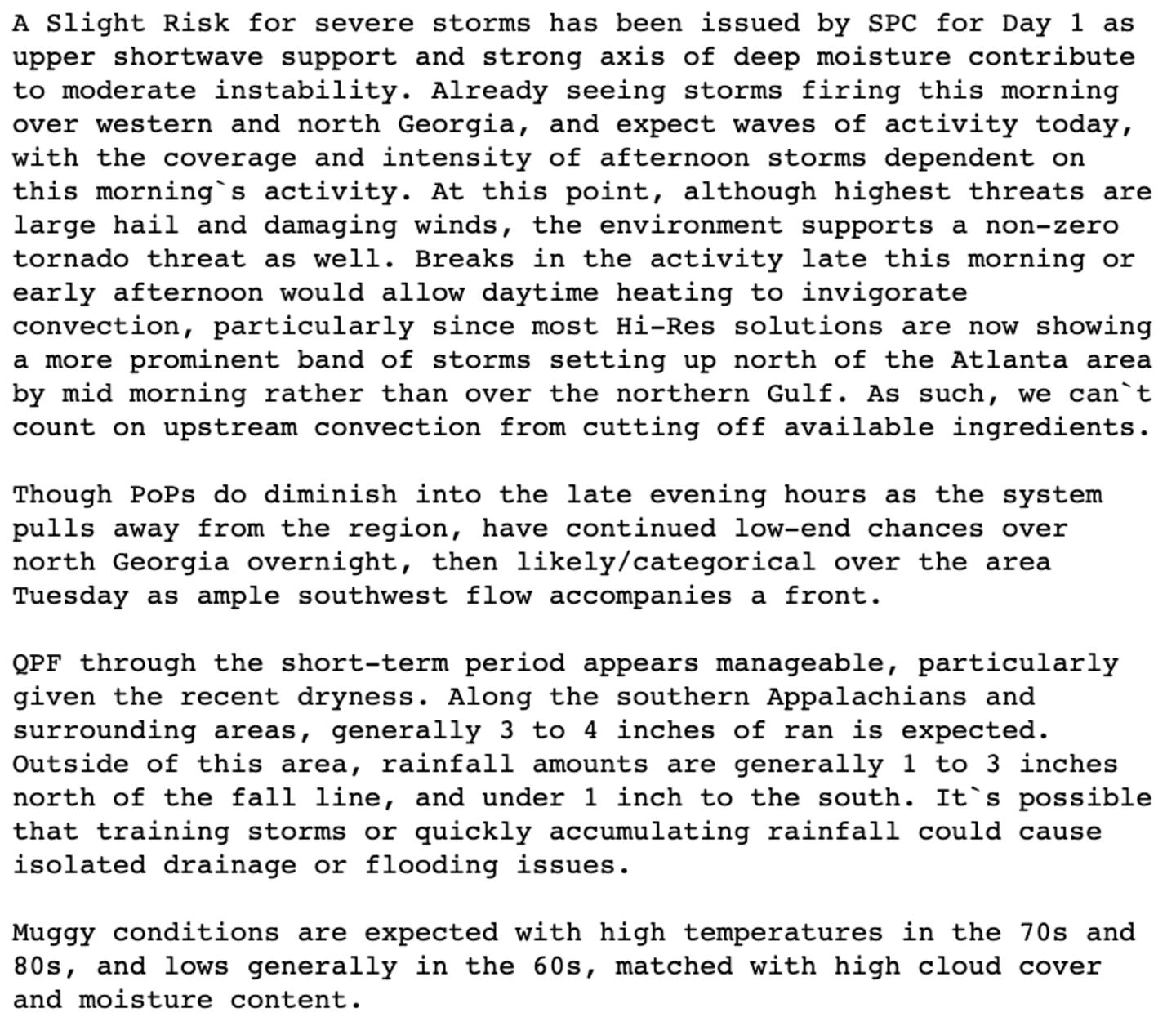 FORECAST TECHNICAL DISCUSSION NWS ATLANTA OFFICE:
