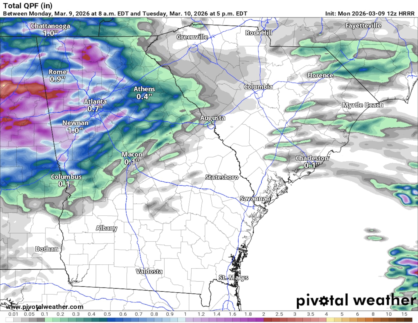 A respectable amount of rain fell over North Georgia and Metro Atlanta over the weekend, boosting the Month-to-Date rainfall so far this March and helping to ease the developing drought in the state.