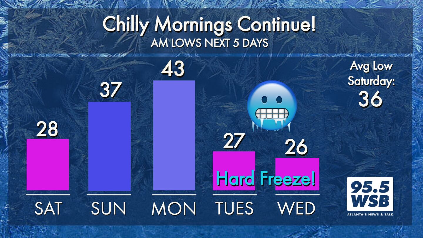 Looking ahead to next week, temperatures are expected to drop again into the mid to upper 20s after a cold front pushes through on Sunday night.