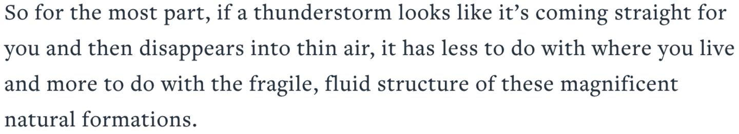 Informal polls have shown 97% of people believe there’s something special about where they live that makes the weather behave in a unique way for thunderstorms. A “protective bubble”.