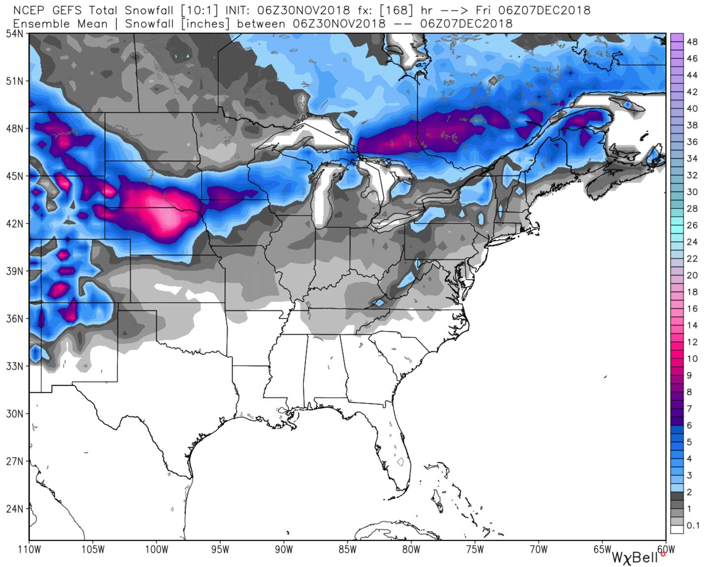 GFS ENSEMBLE MODEL SNOW TO DECEMBER 7TH: