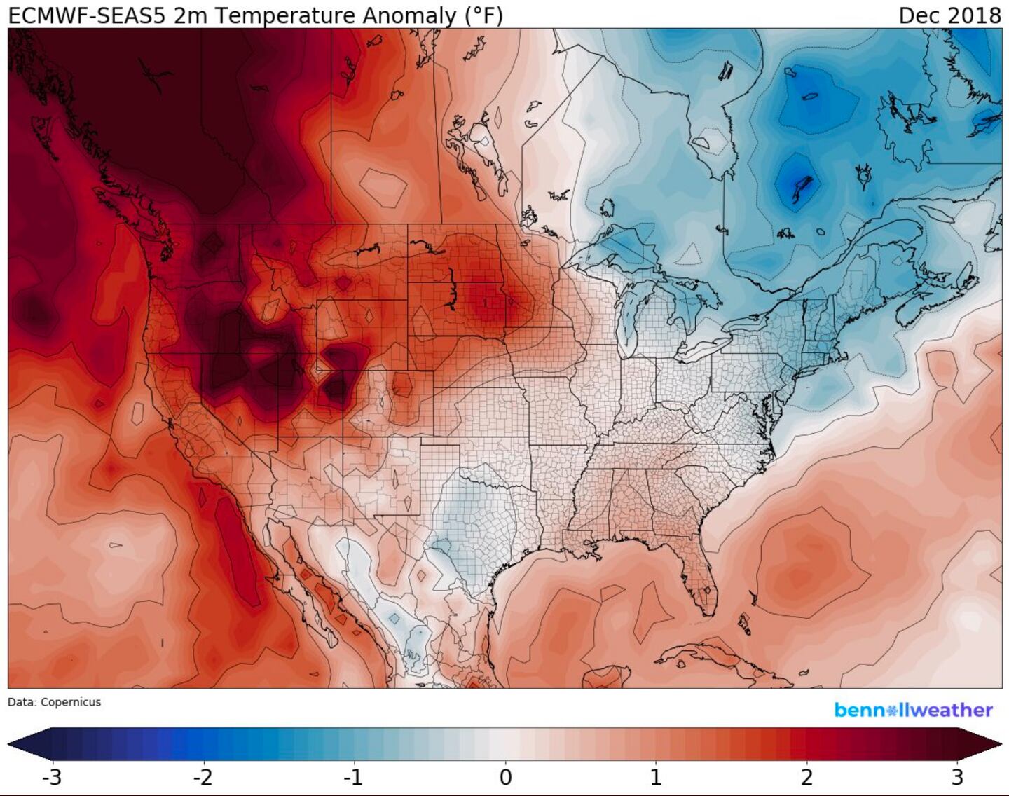 Some discrepancy in the ECMWF climate model and ensemble for DECEMBER: